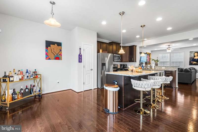 Fabulous end unit with 3 Beds & 3.5 bath townhouse in most desirable Parkside at Westphalia. Built in 2018, it still shows like Brand New Home & Model w/9 ft ceiling on every floor . Enter through the main door to lovely entry foyer to experience the luxurious gleaming espresso hard wood floors. The basement is complete with a large Recreation room with a full bathroom & walk out to the nice sized, fully fenced backyard with a pristine upgraded patio. The main level showcases an open floor plan with tall ceilings and recessed lighting, an eat in kitchen adjacent to the dining room is matched with expresso cabinetry, matching sterling silver hardware finished with stunning granite counter tops. Stainless steel appliances inclusive of a six burner gas range. Spacious island with room for barstools and extra storage. Deck from kitchen thru sliders is perfect for entertaining family and friends. The living room open to the kitchen, is bathed in natural light with room for all of your furnishings and decor. The upper level showcases the grand primary suite with crate ceilings is complete with a custom walk-in closet and a primary bathroom finished with dual vanity and shower. Two other bedrooms on the upper level share a well-appointed bathroom. For the convenience the laundry is located outside the primary Owners Suite. Community amenities include two pools, a playground, a concert lawn, walking trails, community/rec center and a gym. It is conveniently located minutes from Andrews Air Force Base, Pennsylvania Avenue and 20 minutes from downtown DC.
