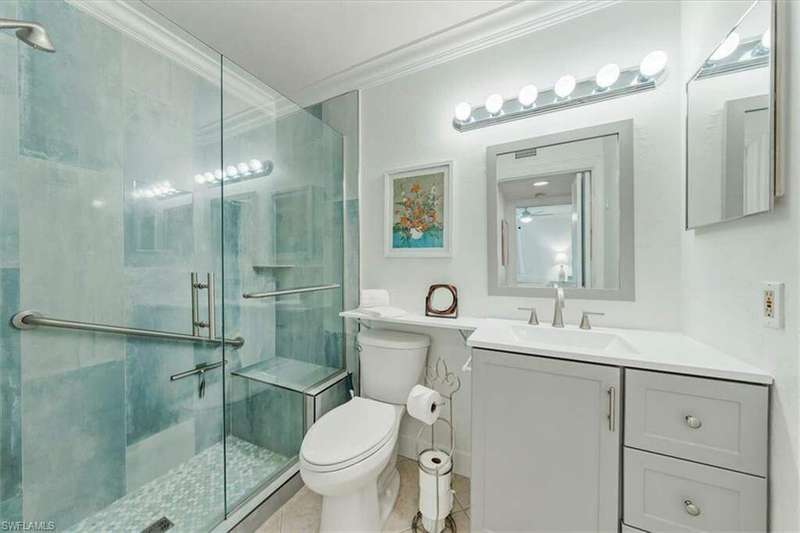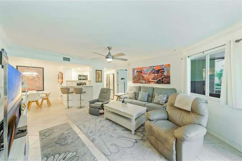LOCATION, LOCATION! Close to FGCU, Coconut Point Mall, Miromar Outlets & Airport! This beautifully remodeled 2-bedroom, 2-bathroom END UNIT, located on the first floor, is sure to impress from the moment you arrive. The open-concept kitchen features a breakfast bar, granite countertops, and newer appliances. The spacious, flowing floor plan, with tile flooring throughout, is perfect for entertaining. Special touches include crown molding, remodeled walk-in showers with elegant tile walls and built-in benches (with handicap bars), new commodes, and granite vanities with sinks. The home also boasts new ceiling fans throughout, as well as newly replaced lanai screens. Storage is abundant with walk-in closets in both bedrooms, and a newer washer and dryer are included. Additionally, the electrical circuit breaker box was updated in 2021, and the water heater is approximately 4 years old. The A/C compressor is also about 3 years old. To enhance comfort, the seller has installed window and slider tinting to reduce sun glare. Relax and unwind on the spacious lanai with your favorite beverage. Fountain Lakes offers a wealth of amenities, including a 9-hole golf course, pickleball, tennis, a fitness center, a playground, a billiards room, a picnic area with grills, and a swimming pool. Plus, there's an additional pool at The Greens. What more could you ask for? Two pets are allowed with approval.