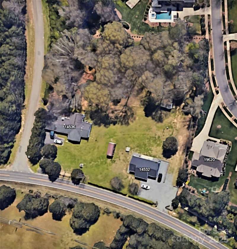 So many possibilities! Priced Below Tax Value, this listing is for two parcels nestled between the neighborhoods of River Run and Davidson Farms in the highly desirable town of Davidson: 14532 E Rocky River Rd is a 3bdr/2ba home built in 2018. The split bedroom floorplan grants privacy to the primary suite which has his and her closets. High ceilings make the open concept layout feel spacious. The kitchen has beautiful granite countertops and tile backsplash. It's situated on an acre on land, with a beautiful level backyard and mature landscaping. This listing ALSO includes the adjacent property at 14536 E Rocky River Rd which consists of two separate parcel numbers equaling approximately one acre of land that would make a lovely site to build your forever home. Bring your own builder, no HOA, only 5 minutes to downtown Davidson, and great schools! The doublewide on the property is not being listed of value and is "as is" condition. Currently, there are two 3 bedroom septic systems, with a shared well. City water is available at the road with a tap fee. Natural gas is also available at the road. A recent soil evaluation by Mecklenburg County Ground and Wastewater Services found suitable soil to support up to a 5 bedroom home that could be built where the current doublewide sits. I have consulted with a licensed soil scientist as an easement would be required. The detached green shed does not convey with the sale and will be moved prior to closing.