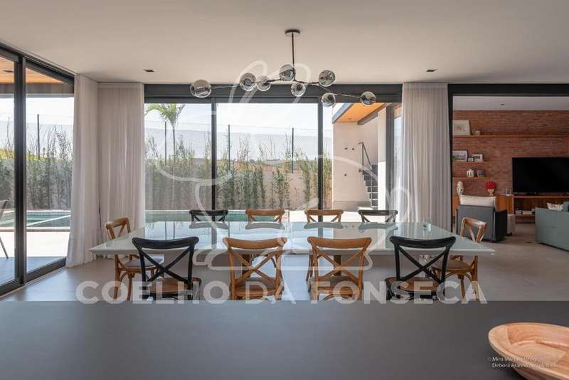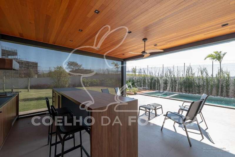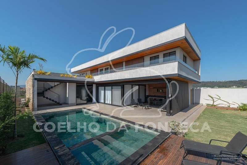 Belíssima casa completa com 970² de terreno e quase 700m² de área construída, possuindo 4 suítes sociais, sendo 1 master com duas cubas e hidromassagem, 1 suíte de serviço, amplo roupeiro, 1 escritório, sala muito ampla com 2 ambientes com lareira (podendo ser 3), cozinha em conceito aberto integrada, sala de jantar (integrada com cozinha) e vista para área gourmet e piscina, despensa, lavanderia, área gourmet com churrasqueira, piscina com spa integrado e amplo solário no 1º andar integrado com as 3 suítes e escritório (vista para a Serra do Japi em Jundiaí). Ar-condicionado e aquecimento solar na piscina.