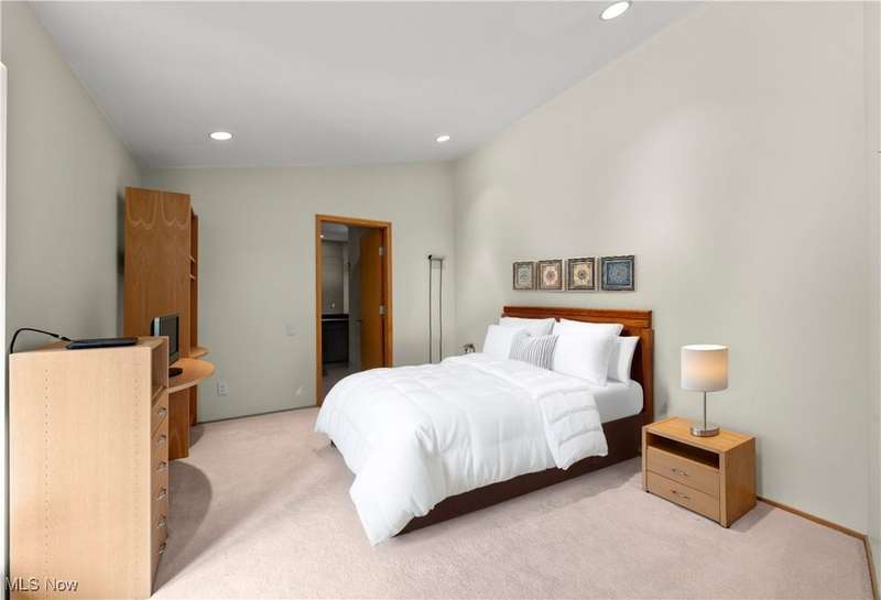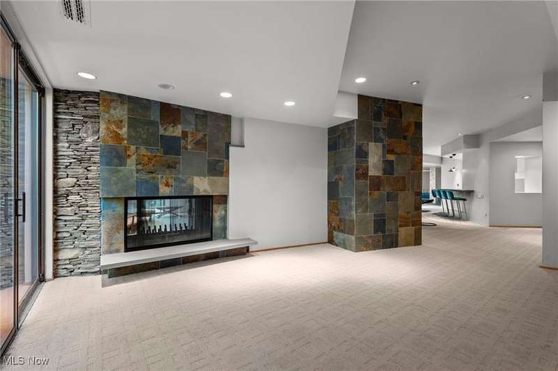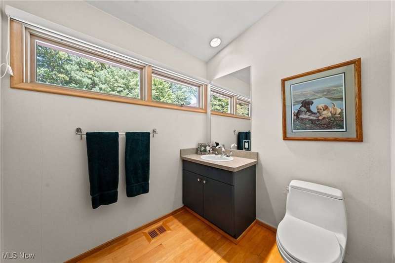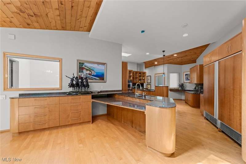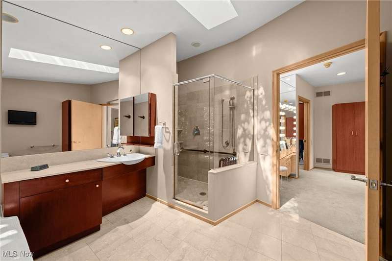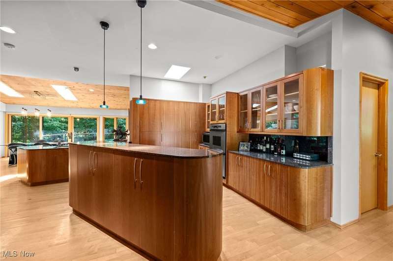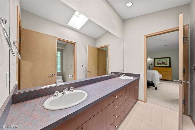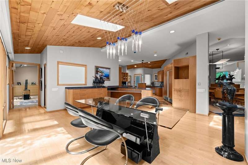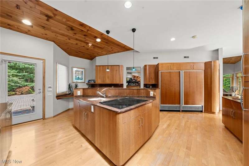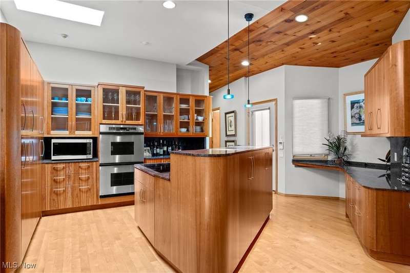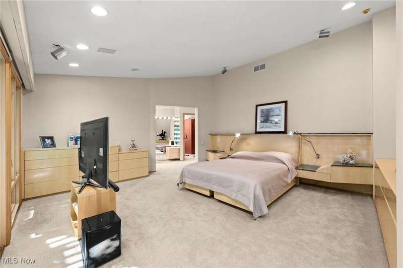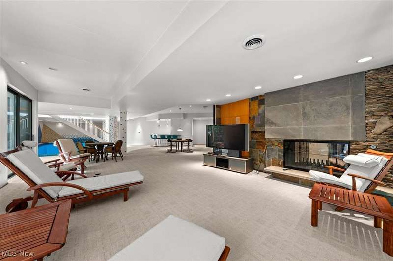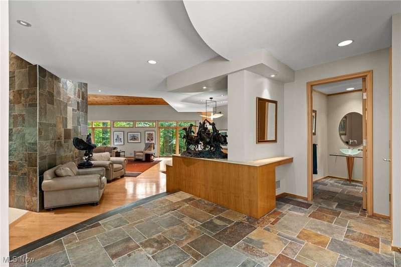 Remarkable modern design by Tony Crisafi (California architect) with a Frank LLoyd Wright influence. Sited on a gorgeous, wooded lot with a beautiful meandering creek, this home is designed for entertaining! A dramatic entry foyer with curved stairway opens onto the fabulous living area which consists of a great room and library separated by a dramatic fireplace, an open kitchen, and a fabulous dining room. These rooms all flow seamlessly together, have walls of glass to let the outdoors inside, and custom built-ins throughout! The first-floor owner's suite has dual bathrooms, a walk-in closet, and glorious views. The second floor of this home has 3 bedrooms and 2 full bathrooms! A mezzanine level down a couple of steps from the foyer features a huge multi-purpose room which can be a studio, exercise room, game room, or more! And then there is the one-of-a-kind walkout lower level which is simply second to none! There is an indoor lap pool, spa, family room, media room, and bar area! All of this is surrounded by walls of windows which overlook the beautiful landscape. This home as an elevator, wrap around decks, steam room, and lighting system! A truly one-of-a-kind property on one of Moreland Hills most sought after cul de sac streets!