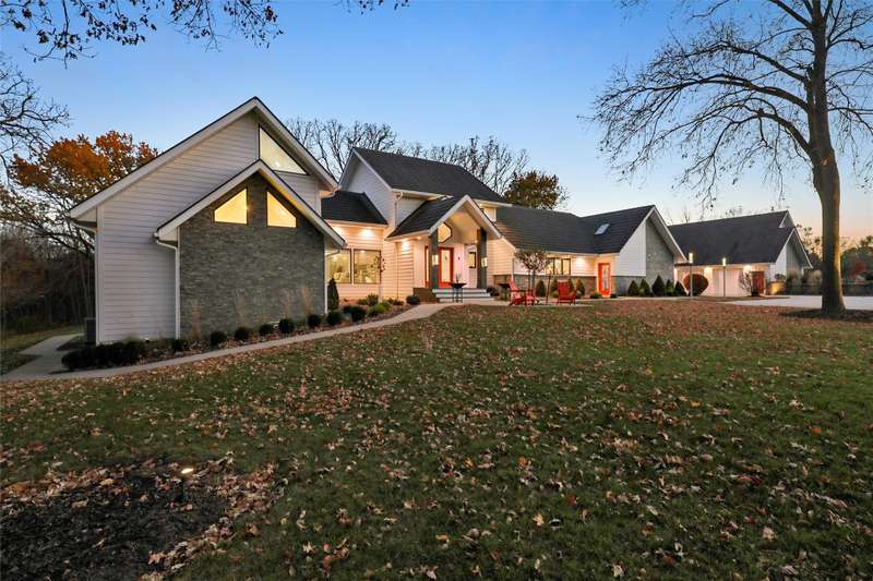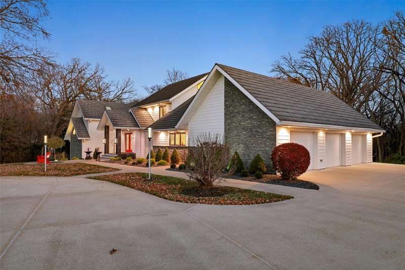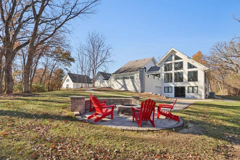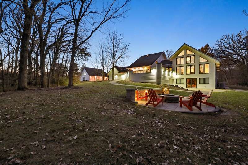 Welcome to this one-of-a-kind masterpiece at 9295 NW 41st Ct in Polk City, Iowa, where elegance and functionality meet across 6478 sq. ft. of meticulously transformed living space! Situated on a sprawling 7.5-acre lot, this 4-bed, 4-bath contemporary home offers a serene, private retreat that has been completely renovated with top-of-the-line materials and an eye for detail. The main kitchen is a chef's dream, featuring quartzite countertops, a custom concrete sink, and bespoke cabinetry, seamlessly flowing into the living areas. The main-floor primary suite serves as a true getaway, with cathedral ceilings, a loft area, and incredible view of the peaceful outdoors. Its en-suite bath is equally stunning, boasting a quartz shower and a standalone tub. Step up the beautiful glass-enclosed staircase to find 2 additional bedrooms each with a loft space. The walk-out lower level is an entertainer's paradise, offering a second full kitchen with bar, wine room, game and gathering areas. Step outside to enjoy the peaceful surroundings from the open patio and the fire-pit. The ultimate garage setup is perfect for hobbyists or guests; both garages are heated and cooled, with the detached garage featuring a full kitchen, bath, and large loft area. This remarkable property blends custom luxury with the privacy of an acreage to create a unique lifestyle opportunity--Words truly cannot do it justice! Schedule a private tour today to fully experience this exceptional home.