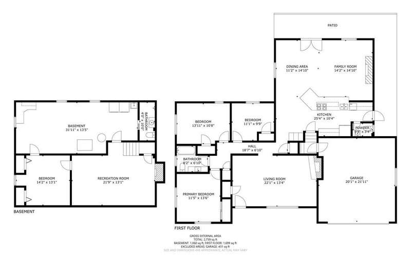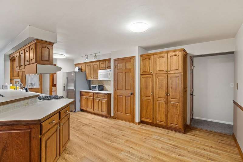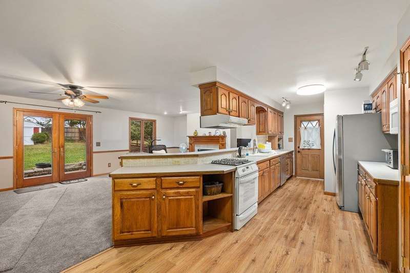 There's still time to have Thanksgiving at your home and this home with an open kitchen/family room offers the perfect space for the family to gather! This home offers so much living space that includes fireplaces in all three living rooms. Fully applianced kitchen includes hickory cabinets, stainless dishwasher and refrigerator and convenient half bath. Three bedrooms with good closet space on the main floor. Lower level with a rec room with fireplace, potential 4th bedroom, workshop area and full bathroom. French doors open from the family room to the nice backyard with a shed and fencing behind. Covered patio area off of the kitchen. Major updates included furnace/central air 2006, hot water heater 2006, some windows replaced, updated electric and Everdry basement waterproofing. New front and storm door 2024, radon system recently installed and programmable thermostat. Glass block basement windows. Hardwood floors throughout under the new carpeting. Lots of potential here!
