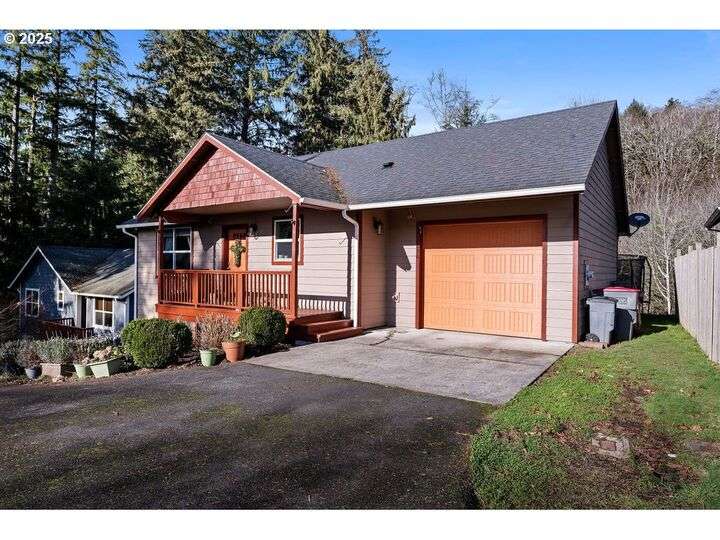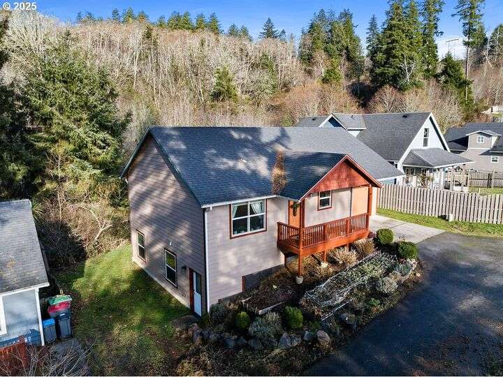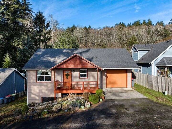 This delightful Astoria residence COMES FULLY FURNISHED,situated on a tranquil dead-end street, offers a serene retreat bordering a permanent green space forest. Enjoy minimal yard maintenance, the soothing presence of a small creek in the back, and seasonal views of the Lewis & Clark River are an added bonus, particularly outside of the summer months. Built in 2013, this meticulously maintained home features 3 bedrooms and 2 bathrooms, including a primary bath with double sinks and a walk-in shower. The lower floor boasts a versatile family room, and for peace of mind, a built-in fire sprinkler system is included. Designed for efficiency, the home is well-insulated and highly energy-efficient. Outdoor amenities include extra parking suitable for a boat or small RV, and a beautiful covered front deck, perfect for year-round enjoyment. This charming property is ready to become your new home!