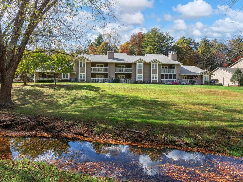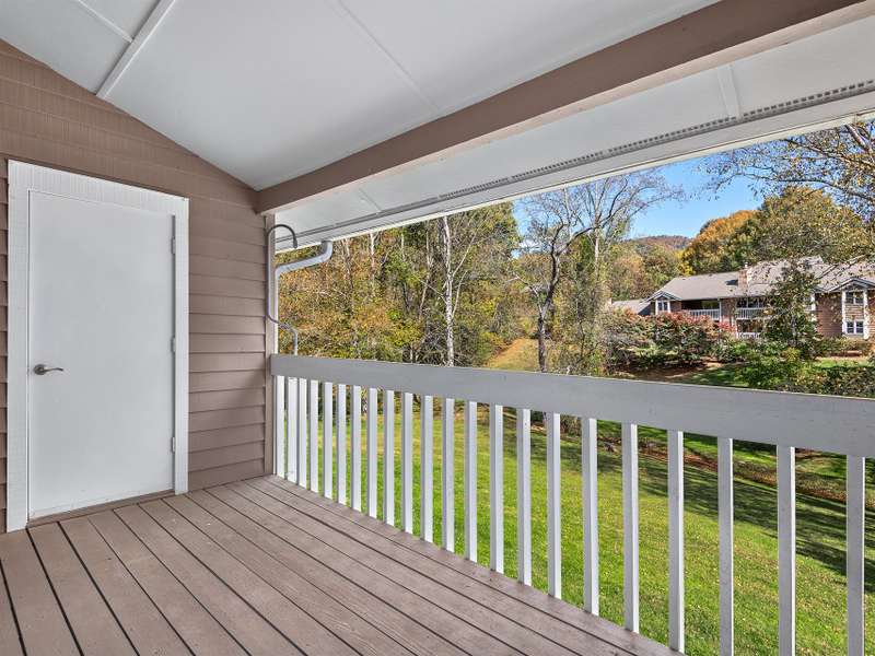 Nestled in the tranquil Creekside Condominiums at Laurel Creek, this charming 2-bedroom, 2-bathroom unit offers the ideal blend of comfort, style, and resort-like convenience. This second floor condo boasts an open-concept floor plan, creating a bright and airy atmosphere for entertaining and daily living. A spacious family room and dining area features vaulted ceilings and a cozy wood-burning fireplace, while the large kitchen offers tons of storage, a breakfast bar, glass cabinet doors, and plenty of room to work. The primary bedroom includes a private ensuite bathroom with shower-tub. Step out onto your private covered deck to enjoy a serene view of the beautifully maintained grounds, complete with mature trees and babbling creek. The community enhances your living experience with fantastic amenities, including a refreshing outdoor pool for sunny days, tennis courts for friendly matches, and a welcoming clubhouse for social gatherings. Conveniently located off Hwy 74/Charlotte Hwy, this home is just a short drive from everything Asheville, Biltmore, and the stunning Blue Ridge Parkway. An excellent investment with long-term rentals permitted.