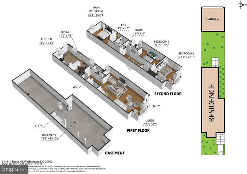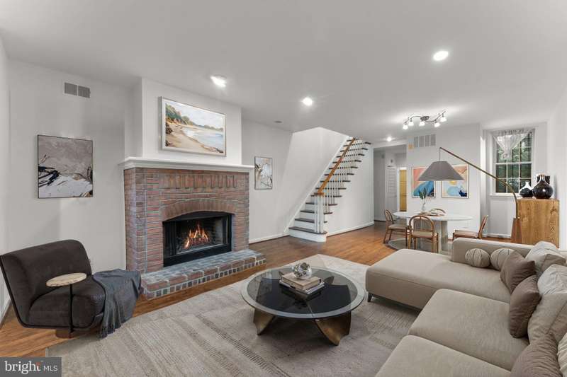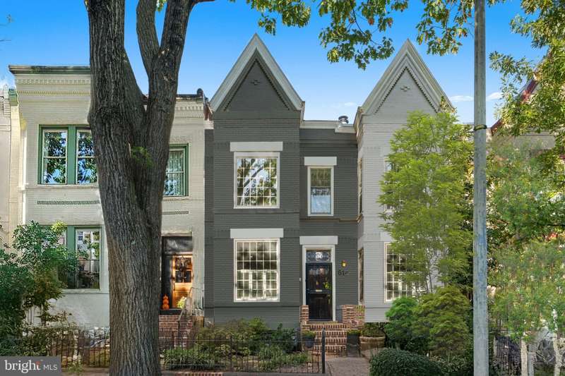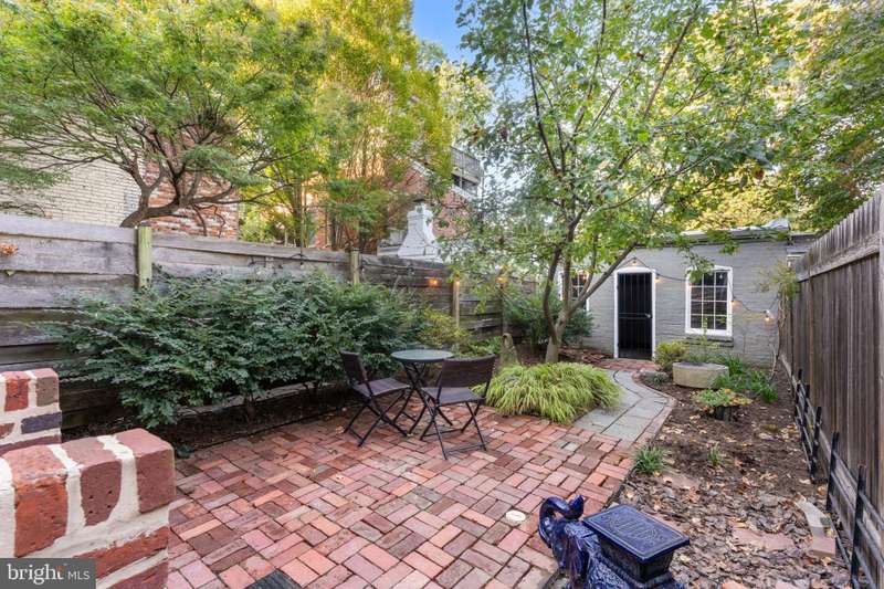 Welcome home to this Capitol Hill gem where classic architecture meets modern living. Behind its timeless facade, you'll find warm, light-filled spaces with solid oak floors, open living and dining areas, working fireplace and a built-in wet bar. French doors lead to an updated kitchen with granite counters, a stylish tile backsplash, and a pantry. Upstairs are three spacious bedrooms, including a primary suite with custom closets and private bath. A built-in bookcase adds charm to another bedroom, while skylights enhance the home's natural light. Enjoy a private patio garden with a landscaped path to the private garage, plus a large basement offering excellent storage and expansion potential. Virtually staged. Ideally located near Michelin-starred Pasqual, Ludlow-Taylor Elementary, H Street, Eastern Market, Union Market, and Metro.