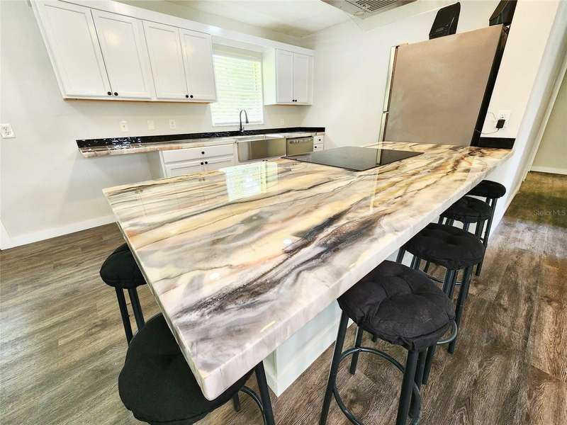 PRICE REDUCTION!!! BRING YOUR OFFERS!! Come check out this beautifully remodeled 3-bedroom, 2-bathroom home with a great room that can easily act as a separate office or a 4th bedroom. Vinyl Flooring throughout the house with NO CARPET!! This home also features a beautifully remodeled kitchen, featuring epoxy coated countertops, as well as a modern range hood, with updated appliances. Both bathrooms feature updated vanities and bathroom fixtures. The primary bathroom boasts a custom epoxy shower as well, keeping with the theme throughout the house. The home sits on just under a 3rd of an acre, with a fire pit in the back yard, as well as a shed for your outdoor storage needs. No HOA, no CDD fees, and this home is close to shopping and restaurants. Make this move-in ready house your next home! Call for a tour today!