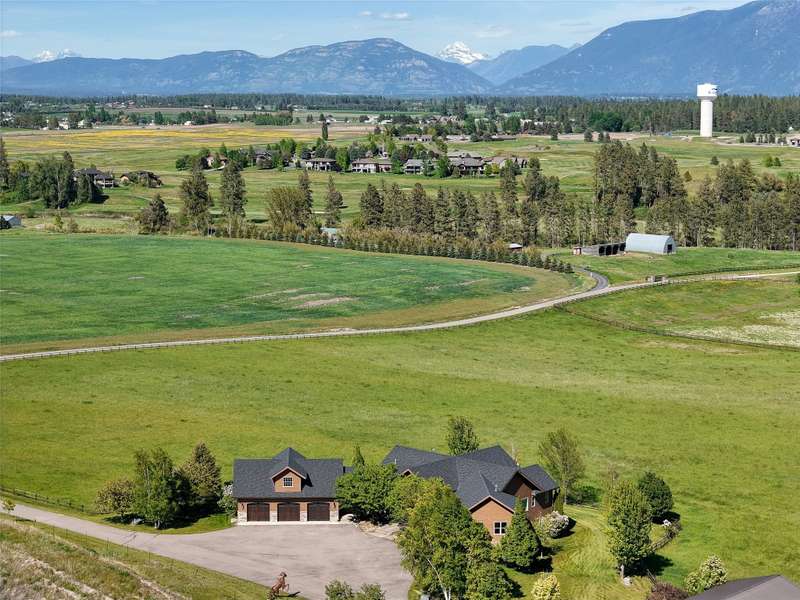 One-of-a-kind equestrian estate. Two homes sitting on two parcels totalling 55+ acres, this superb location overlooks Northern Pines Golf Course, with Glacier National Park, Whitefish Mountain Resort views in the backdrop, and the Stillwater River meandering along the east edge of the property. 310 Jossie Lane is a 6-bed, 7-bath, 7,073 sq. ft. home with a beautifully designed living space, being sold turn-key, fully furnished, with a 3-car garage and a 4-stall pole barn that is ready for your finishing touches. 416 Jossie Lane is a 2,244 sq. ft home with a 3-bed, 3-bath living quarters above the fully finished 5-bay shop. The 85x50 shop is complete with radiant floor heat, a bathroom, 220 V outlets, and floor drains. The ideal equestrian setup includes 6 enclosed paddocks with heat and self-waterers, individually fenced pens, a huge outdoor arena, a round pen, and an indoor arena. Located at the end of a private paved road, with a gated entrance and perimeter fencing, you will feel like you're away from it all, yet you're only minutes from town. Take an evening paddle on the gently flowing Stillwater River and enjoy a variety of wildlife. Just a few minutes from shopping, Costco, Logan Health, and all Flathead Valley amenities. See Supplemental Remarks for more info.