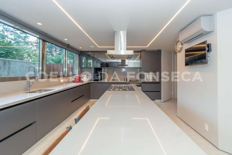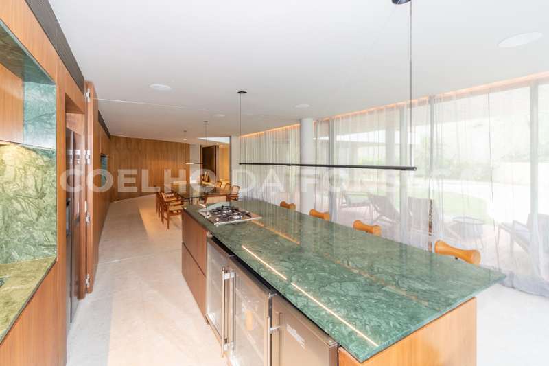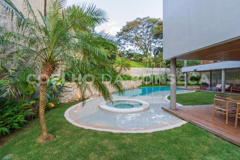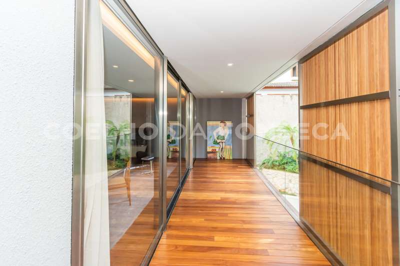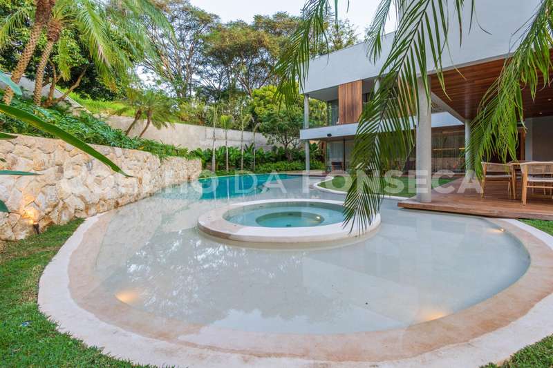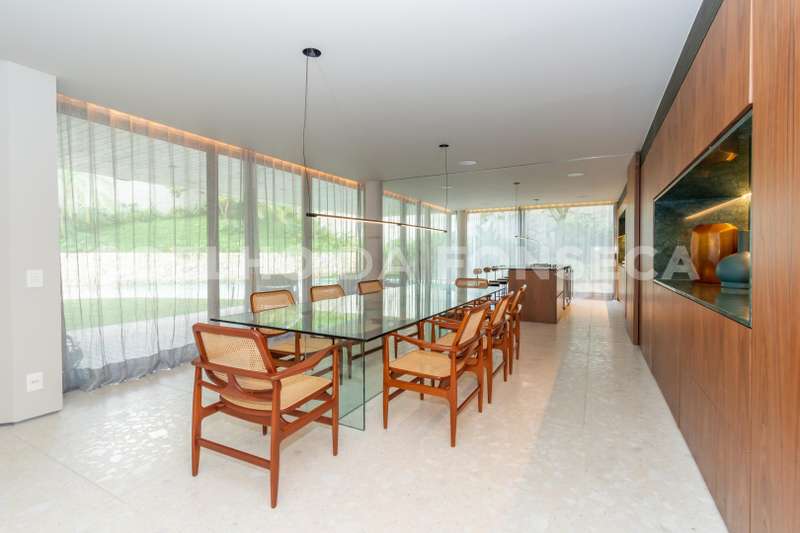 Os ambientes da casa são totalmente integrados com a área externa, permitindo uma experiência ainda mais imersiva e integrada com a natureza. Além disso, a casa conta com elevador, dormitório para colaboradora, adega, lavanderia e ar-condicionado em todos os ambientes, proporcionando praticidade e comodidade aos moradores.
