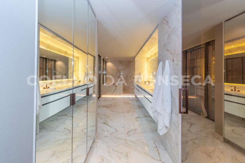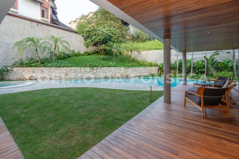Casa no condomínio TAMBORÉ I, com 711m² área construída, 3 dormitório(s), 3 suíte(s), 9 vaga(s), 4 banheiro(s), piscina, escritório, sauna, depósito, mobiliado (a), rua sem saída, ar condicionado, dep. de empregados, elevador, aquecedor solar, pé direito duplo.