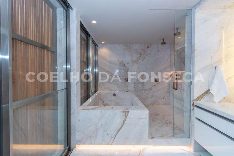 O closet, com sua clarabóia, é um dos destaques da casa, permitindo a entrada de luz natural e criando um ambiente ainda mais agradável. As três suítes são amplas e confortáveis, sendo a Master um verdadeiro espetáculo de cinema, com detalhes que impressionam e encantam.