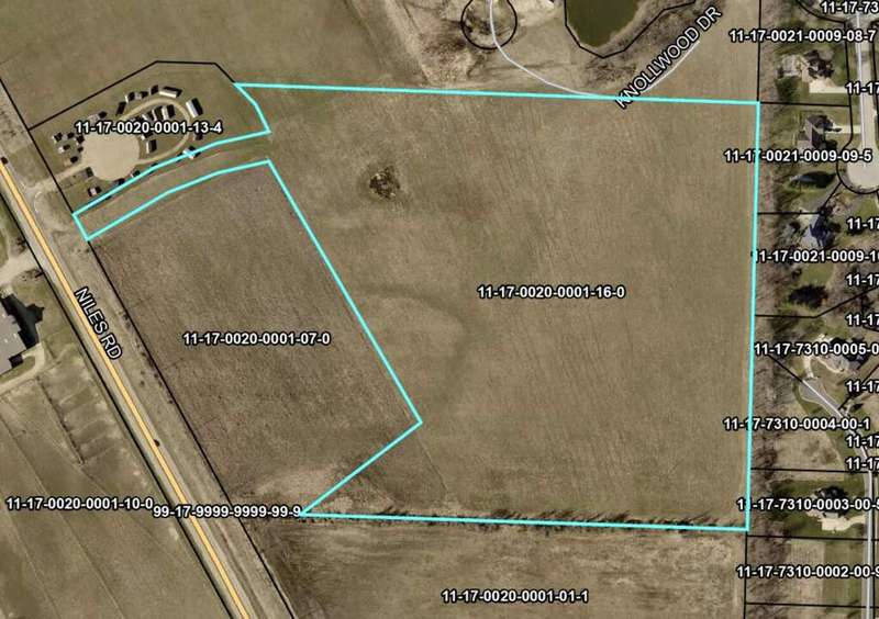 This 25 acre parcel of land is currently hay fields but is zoned R-1 Residential so it could be a future phase of Concord Ridge Subdivision. It includes an access ROW for future road to M139 for entrance to the land.