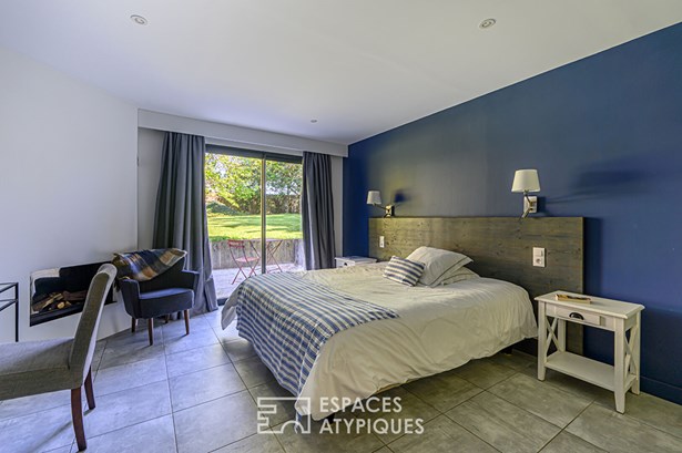 La maison d'hotes, independante, propose quant a elle deux suites et trois chambres, toutes dotees de leur salle d'eau privative, ideale pour un projet familial ou une activite d'accueil.