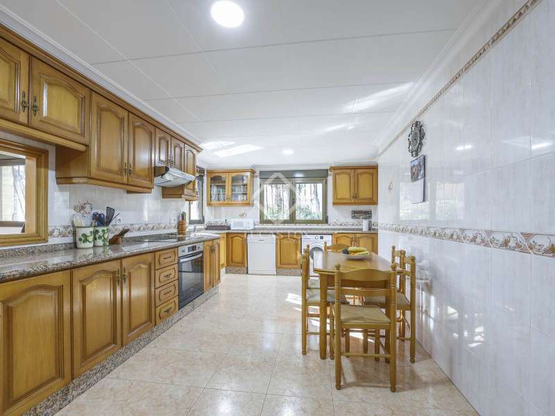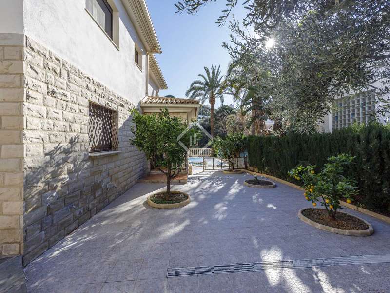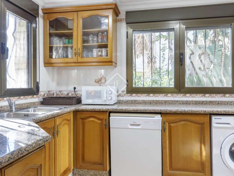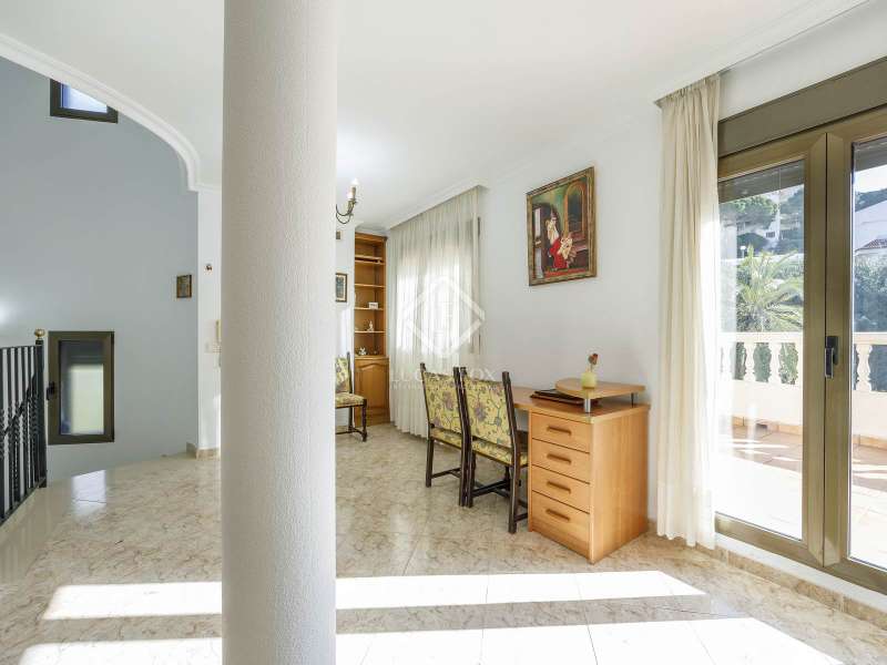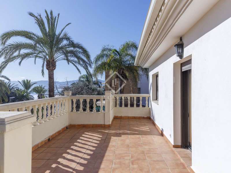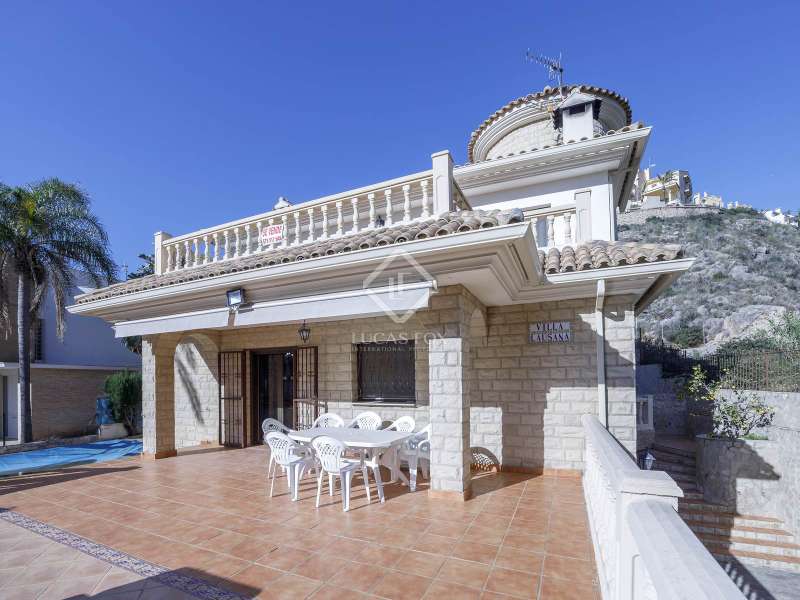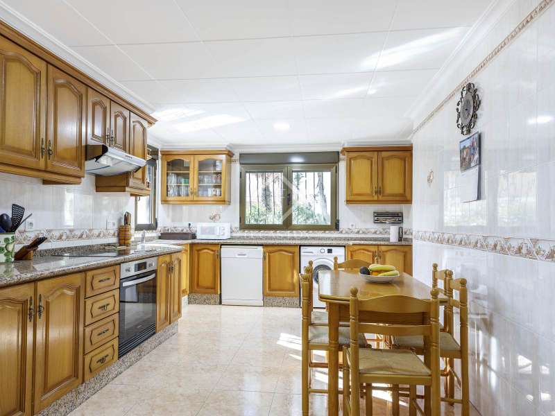 This spectacular family-friendly villa stands out for its location in the Cap Blanc development and its proximity to one of the best beaches in Cullera, where you can enjoy its fine sand and transparent waters. In addition, it has a robust construction and spacious rooms. The house was built in 2001 with high quality materials. It also has an excellent orientation and large terraces on both floors where you can enjoy the views. It is distributed over two floors, plus the lower ground floor. On the main floor , we find a large living-dining room with a fireplace and access to the first terrace with sea views. Next to the living-dining room, there is a large kitchen, also with access to the back of the plot. This area would be ideal for locating the barbecue, next to the fruit trees. Going up the stairs, we reach a living area equipped with a kitchen that gives us independence and support on this floor and is located right in front of the second large terrace with views. Next, there is a corridor that ends in a balcony and which distributes the four bedrooms and two complete bathrooms. The garage can accommodate a minimum of four vehicles and also has a storage area. Exterior the house, we find a garden area with different varieties of plants and fruit trees, the swimming pool and large terraces where you can enjoy outdoor life. Please do not hesitate to contact us for further information or to arrange a personalized visit.