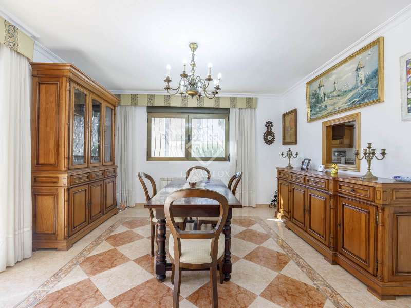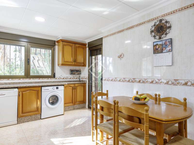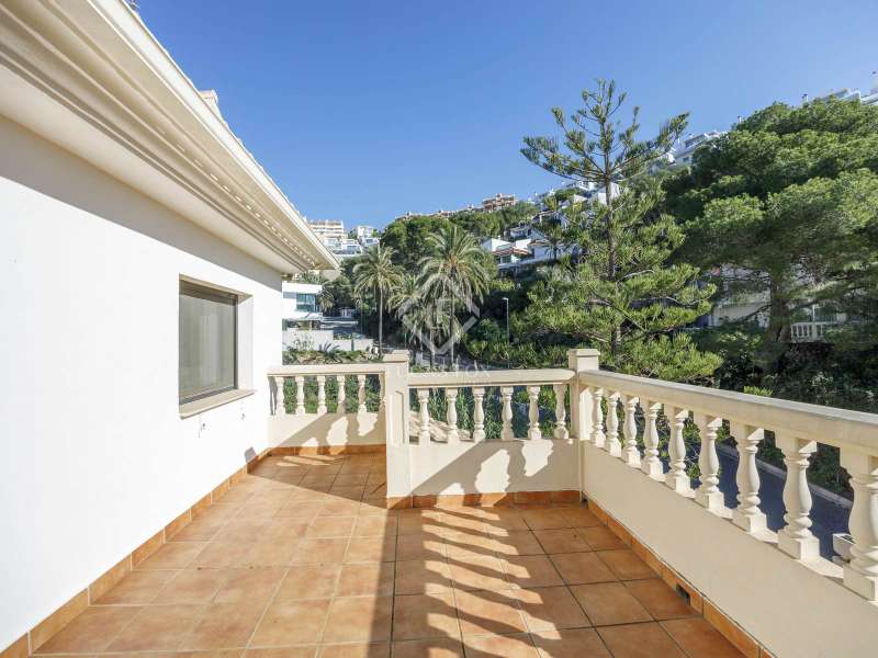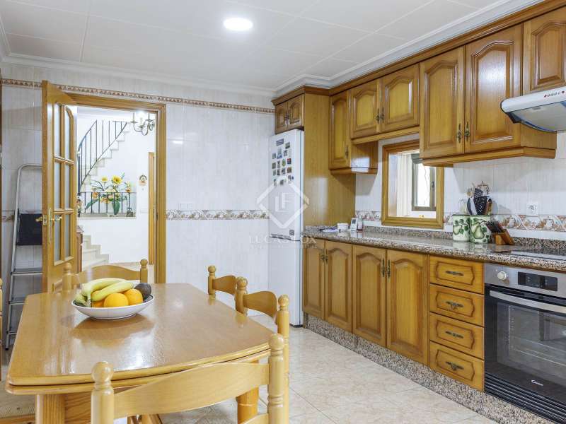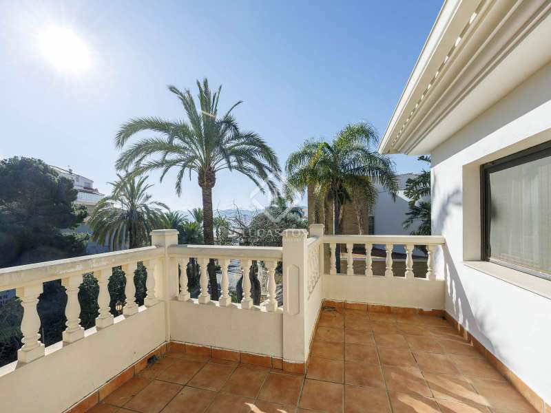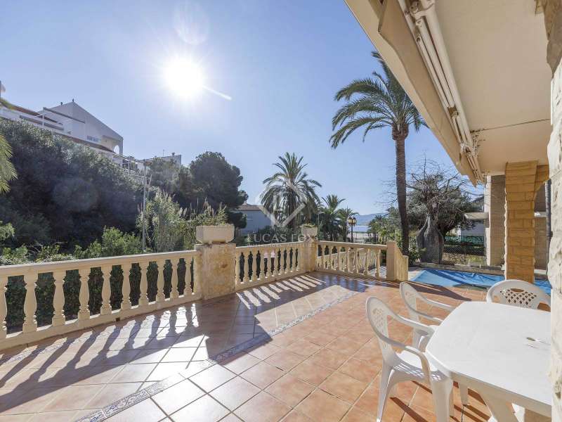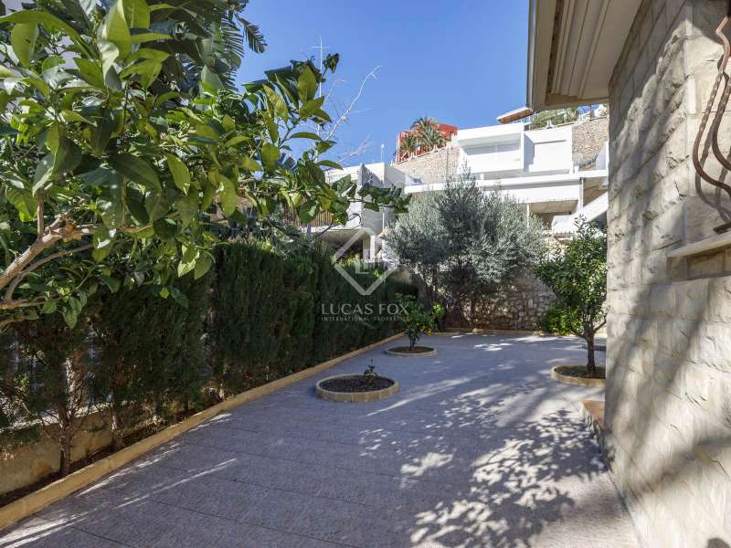 This spectacular family-friendly villa stands out for its location in the Cap Blanc development and its proximity to one of the best beaches in Cullera, where you can enjoy its fine sand and transparent waters. In addition, it has a robust construction and spacious rooms. The house was built in 2001 with high quality materials. It also has an excellent orientation and large terraces on both floors where you can enjoy the views. It is distributed over two floors, plus the lower ground floor. On the main floor , we find a large living-dining room with a fireplace and access to the first terrace with sea views. Next to the living-dining room, there is a large kitchen, also with access to the back of the plot. This area would be ideal for locating the barbecue, next to the fruit trees. Going up the stairs, we reach a living area equipped with a kitchen that gives us independence and support on this floor and is located right in front of the second large terrace with views. Next, there is a corridor that ends in a balcony and which distributes the four bedrooms and two complete bathrooms. The garage can accommodate a minimum of four vehicles and also has a storage area. Exterior the house, we find a garden area with different varieties of plants and fruit trees, the swimming pool and large terraces where you can enjoy outdoor life. Please do not hesitate to contact us for further information or to arrange a personalized visit.