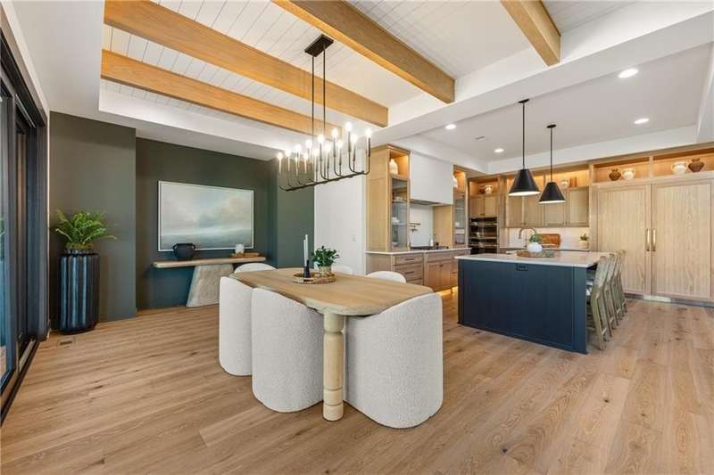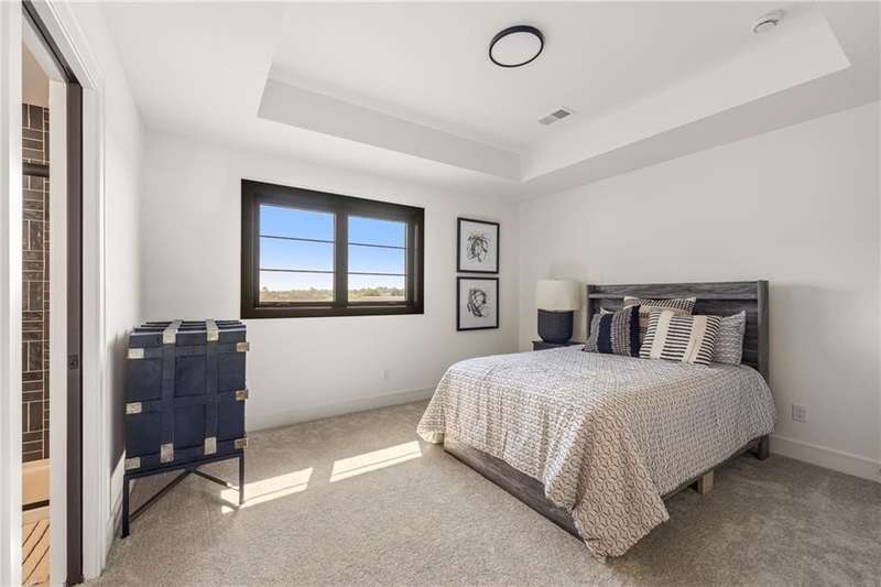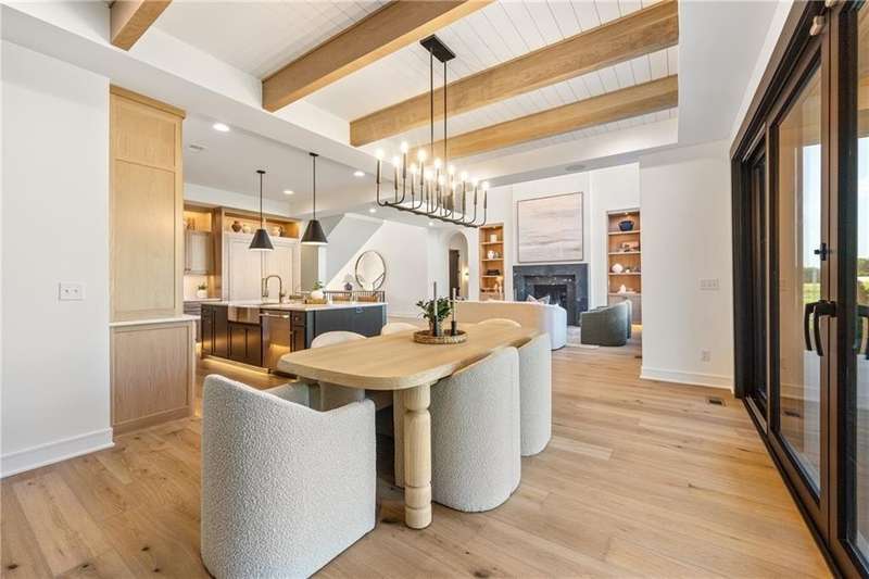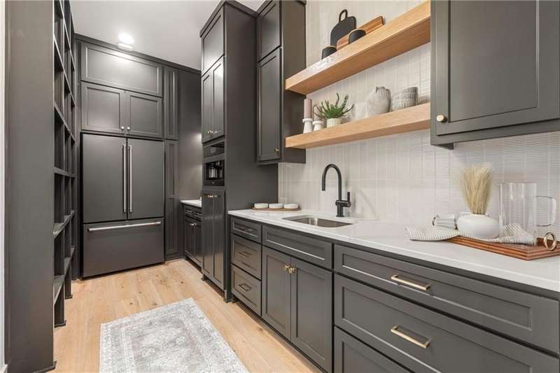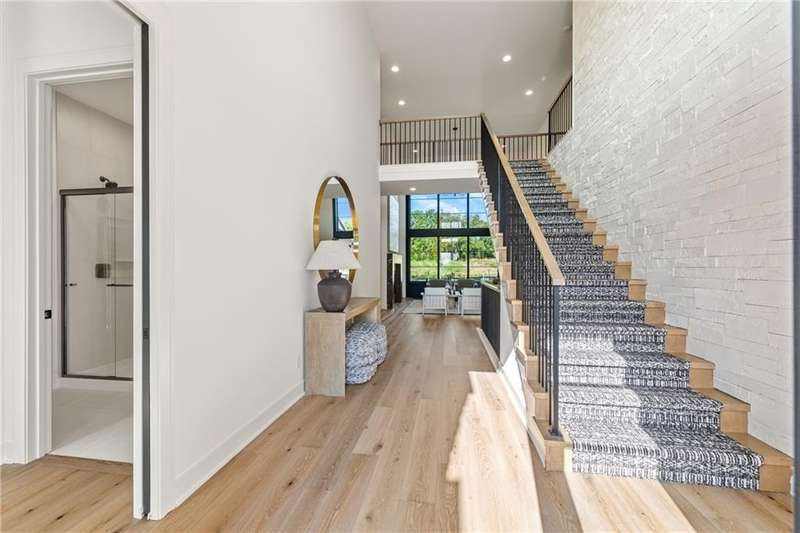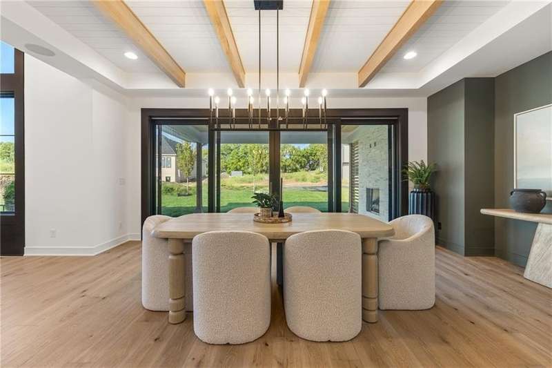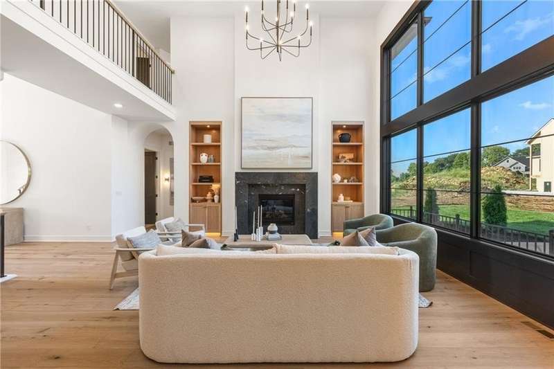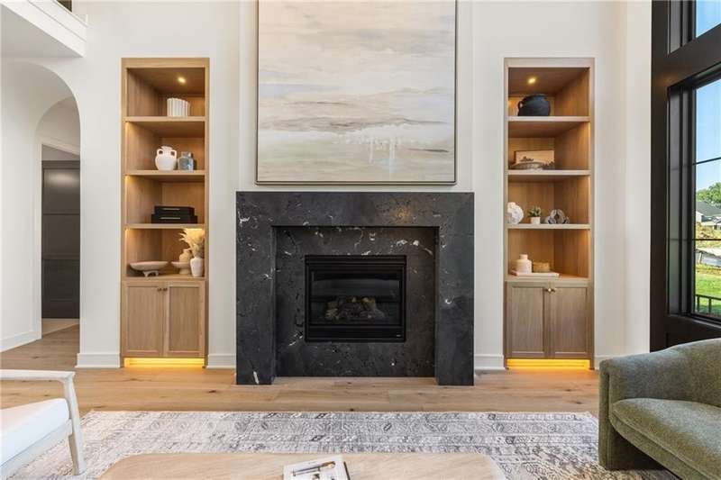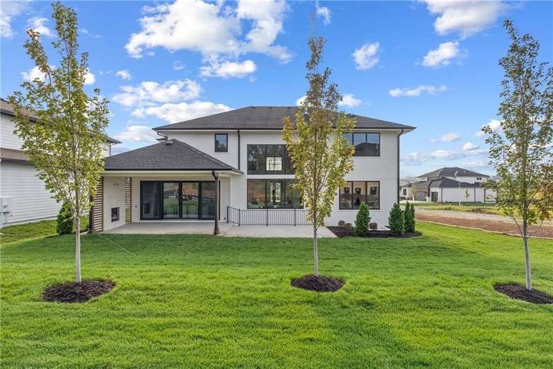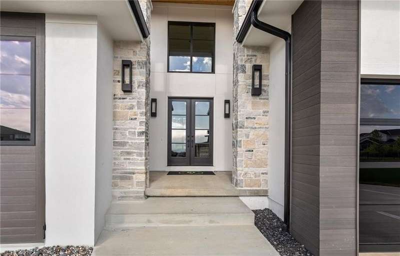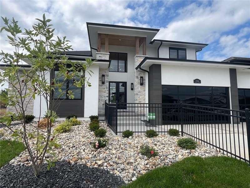 The spectacular new Maplewood IV by JFE that you’ve all been waiting for! Come see this brand new MODEL HOME ready to tour. Arched doorway transition between the rooms, light wood floors, smoky gray blue and mossy green hues, black windows and gold accents give this home a cozy loft feel. This favorite plan is known for its two-story great room, spacious dining room with impressive double slider doors to patio, large covered patio with fireplace and wood privacy slats, and a main floor primary bedroom with spa like bath, freestanding tub, floating shelves with under cabinet lighting, dual head shower with bench seating and textured tiles. WOW! You'll love the fresh approach to the garage entry long mud hall with floor to ceiling lockers and an impressive back pantry prep kitchen. With second refrigerator, sink, built-in coffee maker with easy access to the garage for unpacking groceries. This five bedroom 1.5 story plan has the fifth bedroom or office on the main level as you enter with a private bath and curved arches around every corner including an arched reading nook in the upstairs hallway. Enjoy spacious 2nd, 3rd and 4th bedrooms upstairs, each with their own private bath, plus the step up loft space perfect for entertaining with wood floors and wood slat accent wall. Optional finished basement. Don’t miss the built-in phone charger in the Quartz island! Sophisticated mountain modern exterior with real stone columns and vertical accent wood beams, white stucco and sleek black doors and windows. Come join the fun in Century Farms, a unique one of a kind upscale new home community in Overland Park. Century Farms has a spectacular clubhouse with a fitness center, resort style swimming pool, fire-pit, two pickle-ball courts, farm themed kids play area, and a community garden. Century Farms is conveniently located near the brand new Bluhawk shopping center, Heritage Park, the Johnson County Trail system and the Overland Park Arboretum. BLUE VALLEY SCHOOLS