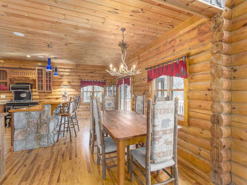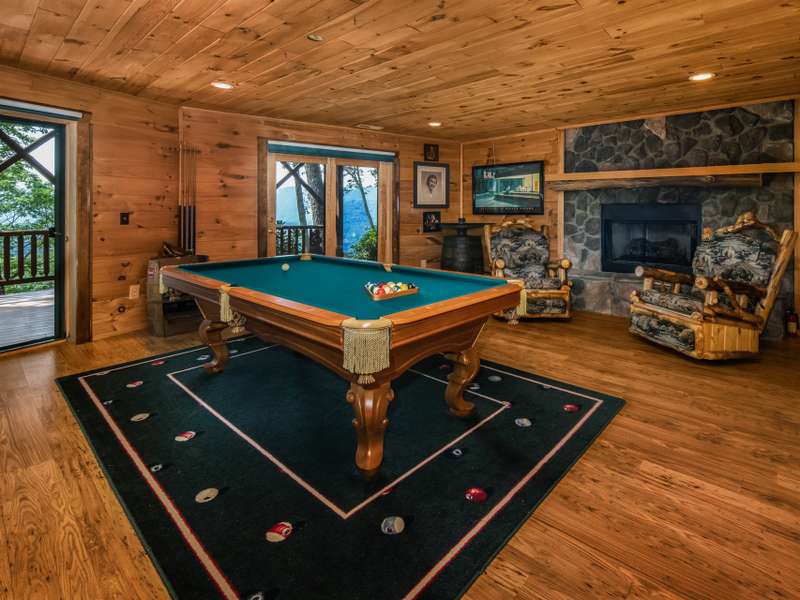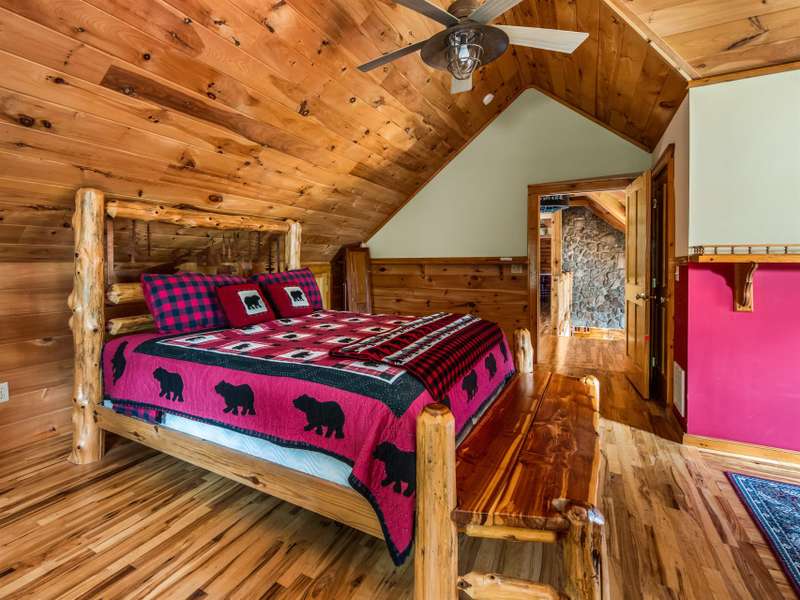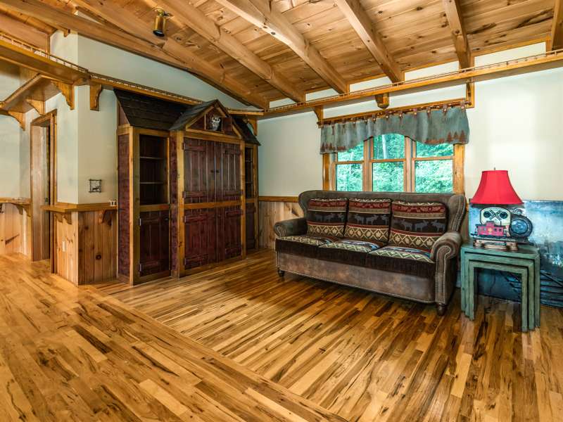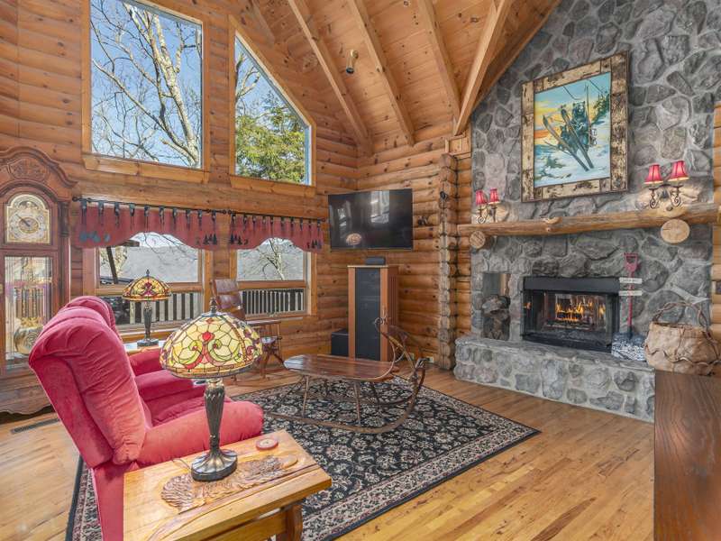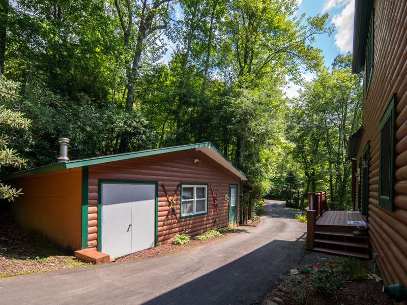 Experience the pinnacle of Maggie Valley mtn living in this custom lodge-like log home, nestled at a breathtaking 4200' elevation. Set on over 3 acres, the home offers privacy and inspiring views. Inside, discover high-end custom finishes throughout. The expansive open-plan living area features a stunning stone fireplace, and the large windows frame awe-inspiring views. Huge primary bedroom suite on the main also enjoys a fireside setting, along with direct access to the sprawling deck. Upstairs you'll find two more bedrooms, bathroom, and a large loft overlooking the 2-story great room. Ideal for entertaining, the lower level boasts a den with pool table/fireplace/bar, bonus rooms, garage, and abundant storage space. Outside, you'll find ample deck space to enjoy the cool summer temps. Newly stained/sealed exterior and new roof ensures lasting beauty/durability. Below the home is a small site-built cabin, perfect as a playhouse or hobby space. 600 sq ft detached studio/workshop is ideal for creative/practical pursuits. Paved roads lead to the gated property. Adjoining included parcel makes a great buffer... or an additional build site with big views! This gated property has so much to offer, and it is your opportunity to own a piece of Blue Ridge paradise.