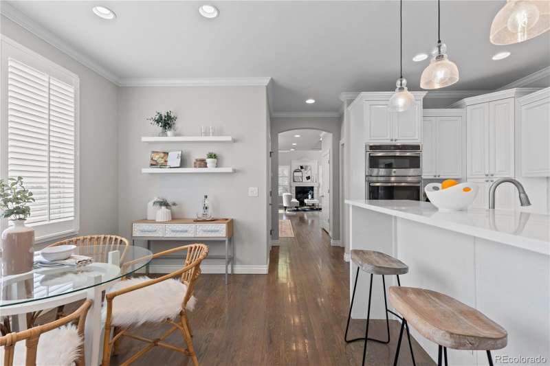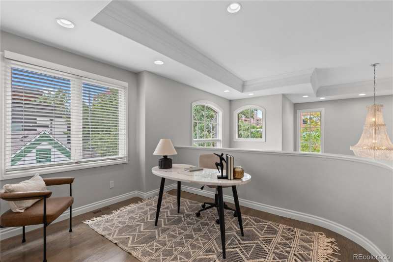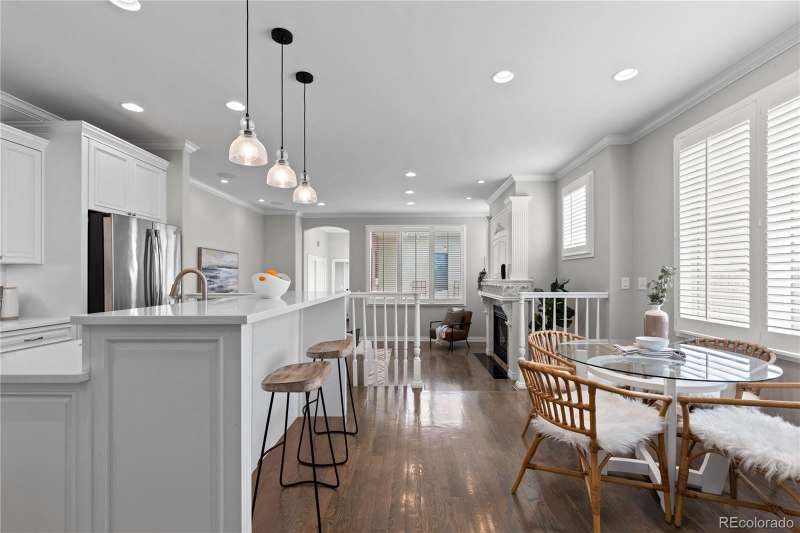 OPEN HOUSE this Sunday 9/21 from 12-2PM! Welcome to 14 S Madison St, a gorgeous, southern, light-filled 1/2 duplex nestled in the heart of Cherry Creek. This elegant residence offers the perfect blend of timeless craftsmanship & modern luxury. Step through the front door into a stunning 2-story entryway & living room, where natural light highlights the open curved staircase & marble-clad fireplace adorned w/ hand-carved wood surround. An open dining area leads to the beautifully appointed chefs kitchen. Featuring custom cabinetry by Thurston Kitchens, sleek slab countertops, a generous island & top-of-the-line stainless steel appliances. The kitchen overlooks the spacious family room complete w/ a 2nd marble fireplace, an ideal space for entertaining or relaxing with loved ones. Just beyond, a sunny south-facing patio invites al fresco dining and grilling in a private, serene setting. Upstairs, you'll find a versatile open den area perfect for a home office or reading nook, along with a spacious guest bedroom & en-suite bath. The luxurious primary suite features a 2-sided fireplace that adjoins the expansive 5-piece primary bathroom w/ a jetted soaking tub, walk-in shower & spacious walk-in closet. The lower level offers even more living space w/ a large bonus room outfitted w/ a custom wet bar, wine fridge & microwave perfect for all your movie nights or game days! A private guest suite with a separate bathroom & ample storage complete this level. Additional highlights include hardwood flooring throughout all 3 levels, in-ceiling speakers & an attached two-car garage. This premier location places you just moments from the upscale boutiques & renowned restaurants of Cherry Creek. Outdoor enthusiasts will love being mere blocks from the Cherry Creek Trail & Gates Tennis Center. W/ Whole Foods, the Cherry Creek Shopping Center, & seasonal farmers markets all nearby, 14 S Madison Street offers a lifestyle of convenience, luxury, & vibrant community with NO HOA!