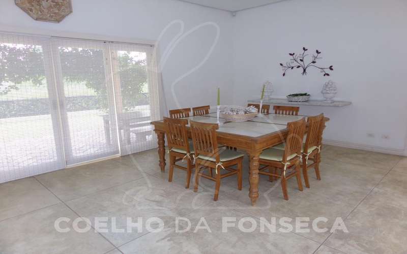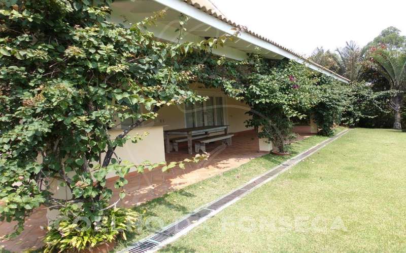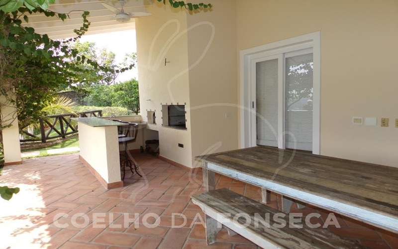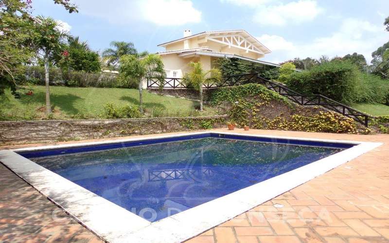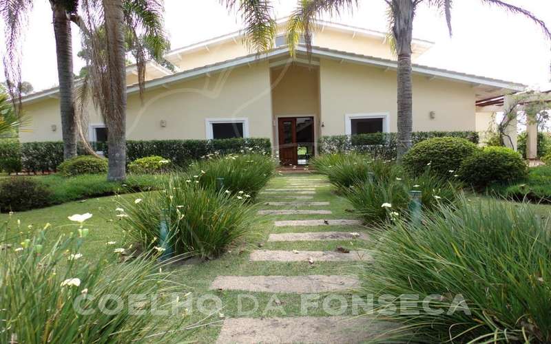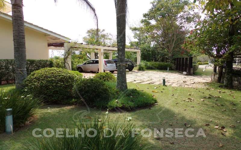 Excelente casa em condomínio fechado, muito bem distribuído num terreno de quase 5.000 m². Área verde com o paisagismo muito bem elaborado pelo renomado Roberto Riscala, piscina, quadra poliesportiva, sauna, árvores frutíferas, churrasqueira, forno para pizza e casa de caseiros.