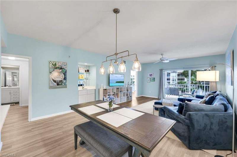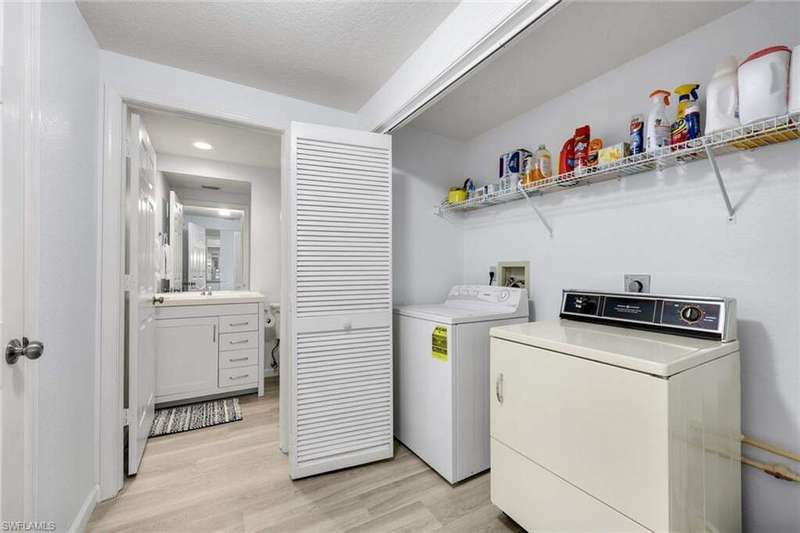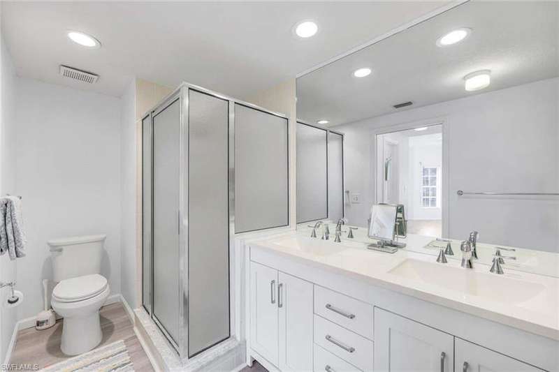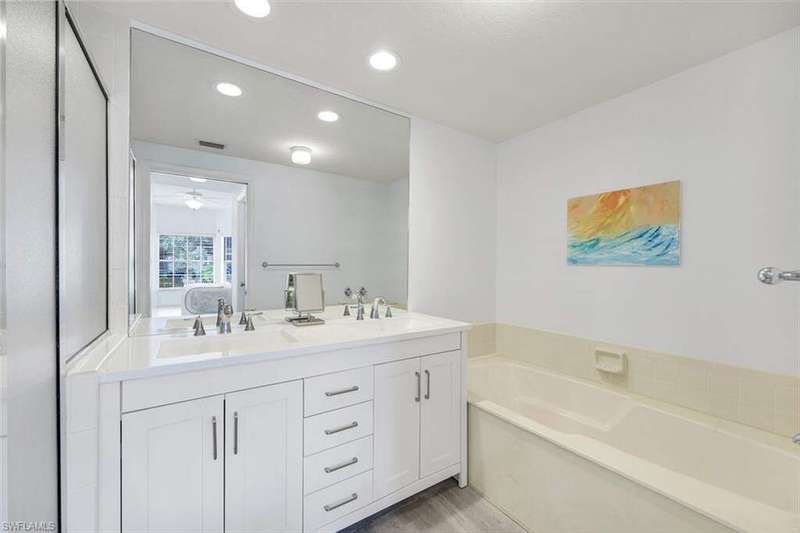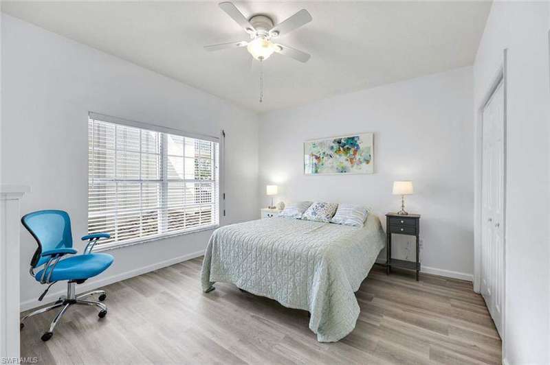 This unit has tons of updates and upgrades. Most furniture can be included if buyer chooses. Wonderful spacious residence with serene coastal decor that creates a calm retreat with sparkling lake views. There are 2 screened lanais allowing coastal breezes to flow through. The beautiful luxury vinyl wood plank flooring has warm tones. The new kitchen has white shaker cabinetry, quartz counters, stainless steel appliances and a tray ceiling with accent lighting and crown molding. This modern design has the popular open shelving concept and glass cabinetry. A large pantry closet has enough extra space for storing your small appliances too. The owner's suite has lovely lake views, large walk-in closet and vanity with dual sinks, quartz counters and a separate shower and soaking tub. The guest bedroom has ample closet space and a refreshed bathroom with new cabinetry and quartz counters. The main lanai has storm shutters and gorgeous lake views. The second lanai off the kitchen has colorful skies at sunset and has storm shutters too. It is an easy walk to the community pool and hot tub. Chardonnay is nestled in the highly sought after neighborhood of the Vineyards. Close to a large variety of shopping, dining, Naples' white sandy beaches, medical facilities and I-75 for traveling. This one checks all the boxes.