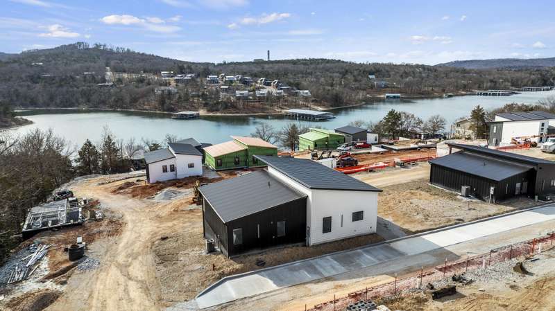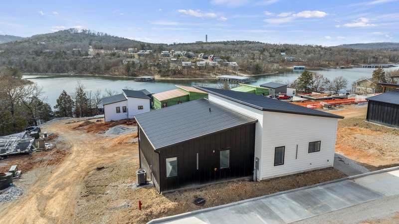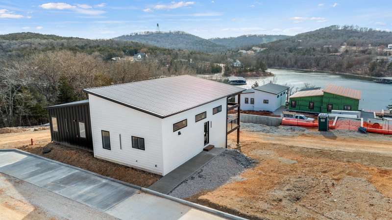 100% complete, move-in ready, fantastic Lake view! This brand new home is just a short easy walk to the community's amenities, has a great lake view and is still just a gentle sloping walk to Table Rock Lake! The modern selections of this unit include granite countertops, luxury vinyl plank flooring, custom built cabinets, modern black lighting/plumbing fixtures, vaulted ceilings, open floor plan and large windows to not miss out on the picturesque views of Table Rock Lake. The exterior gives off some edgy vibes with their sharp, clean lines and bold colors, finished with a covered deck and metal railing. There's even a one car (or golf cart) garage and enormous walk-in crawl space to store all your lake toys! The community features a swimming pool, pavilion, space for yard games, a children's play area, a rock climbing wall, outdoor fireplace, and 2 boat docks with slips available for purchase! The best part of all is that your grounds maintenance is completely taken care of, all you have to do is come and enjoy the lake and all the Branson, Missouri area has to offer.These units are zoned for nightly rental so they are perfect for investment or just to help pay for that lake home you've always wanted!