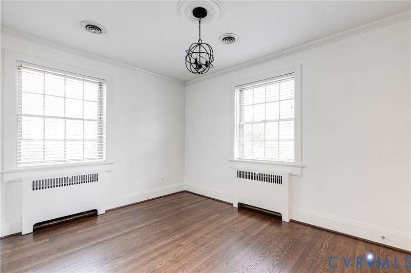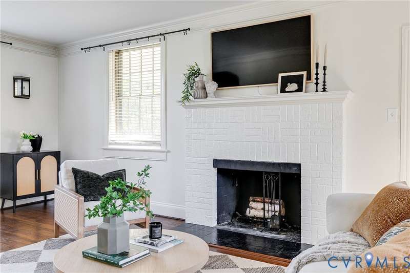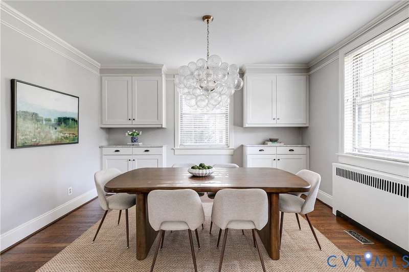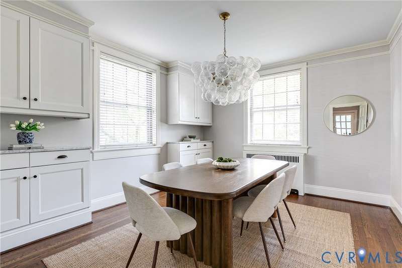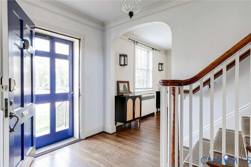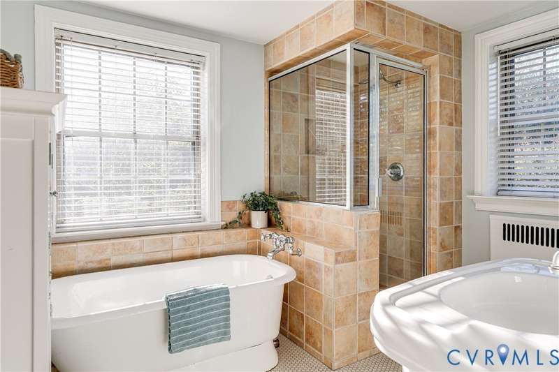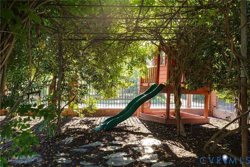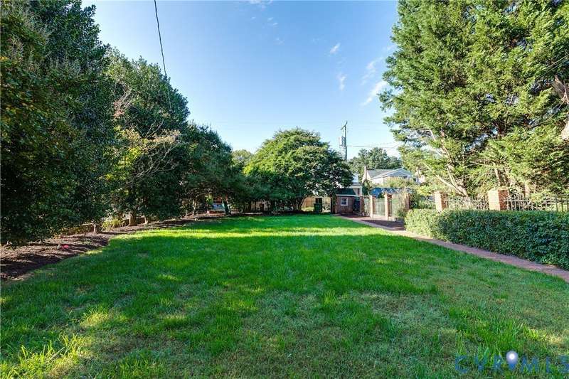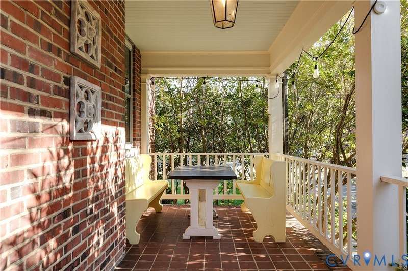 Beautiful brick Colonial on a large flat corner lot on a fabulous block walkable to Stella's! The 1st floor features a proper entry foyer that opens to a large living room with hardwood floors, a wood burning fireplace with a handsome mantle. The living room opens to a wonderful side porch through a French door. The dining room features custom built-in cabinets with granite tops and a designer bubble chandelier. The bright kitchen features Geneva metal cabinets with stainless steel counters and backsplash with a built-in breakfast nook. The Dutch door off the kitchen connects you to the most amazing deep and private outdoor oasis that is surrounded by a brick and iron wall. The 2nd floor features an amazing master suite with spa like bath with separate tile shower, free standing soaking tub and vintage sink, as well as a large walk-in closet. Off of the primary bedroom, there is a spectacular 3rd floor office with vaulted ceiling and a walk-in attic. There are two more spacious bedrooms and a renovated hall bath. The basement features a finished rec room, perfect for TV watching or a playroom. There is a huge utility side to the basement with laundry, storage and a door to outside. Oversized backyard with brick and wrought iron fencing and a brick garden shed is perfect for gardening, relaxing and entertaining with friends. Enjoy the walkability to so many restaurants and playgrounds. There is quick access to downtown and all Richmond has to offer in this quiet and friendly enclave.