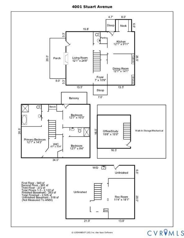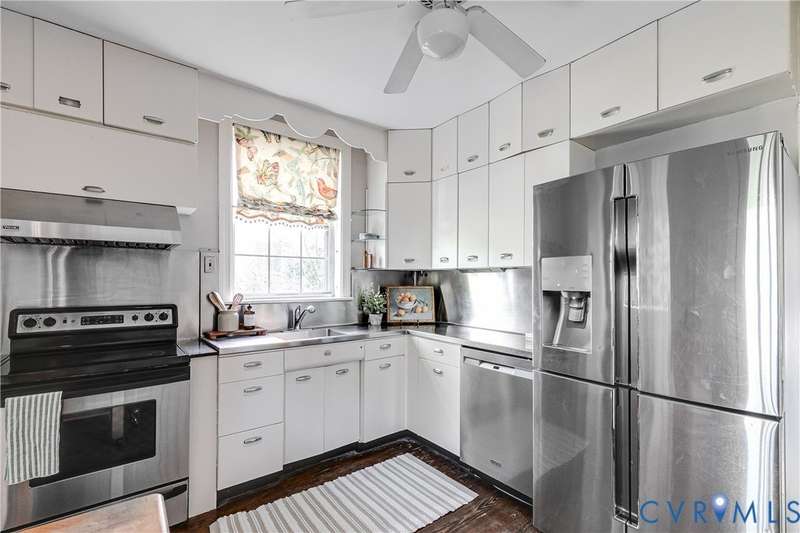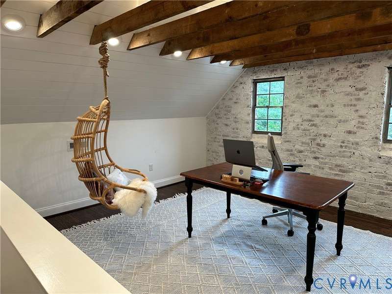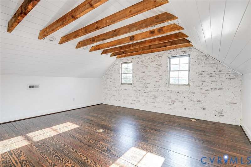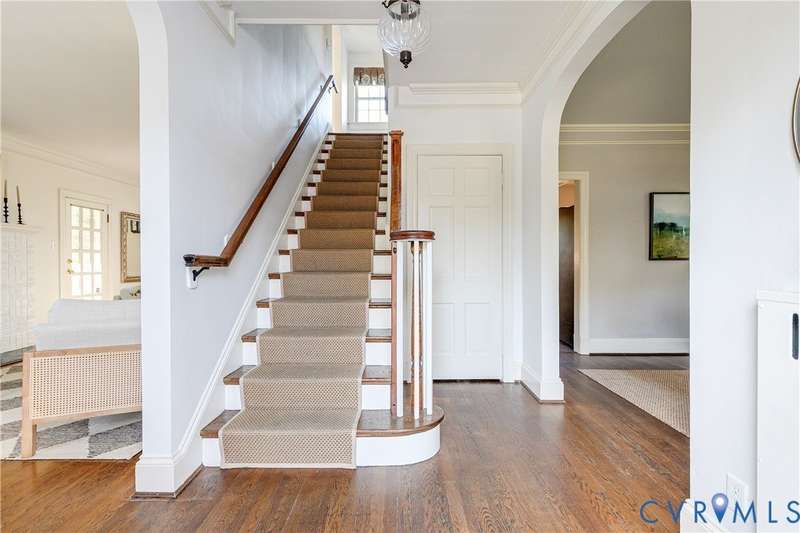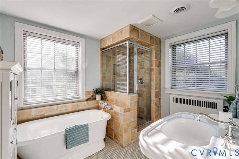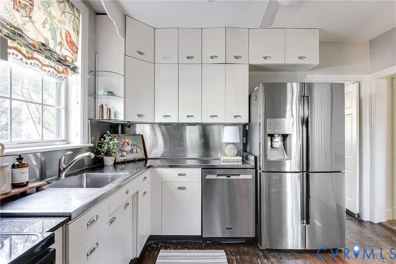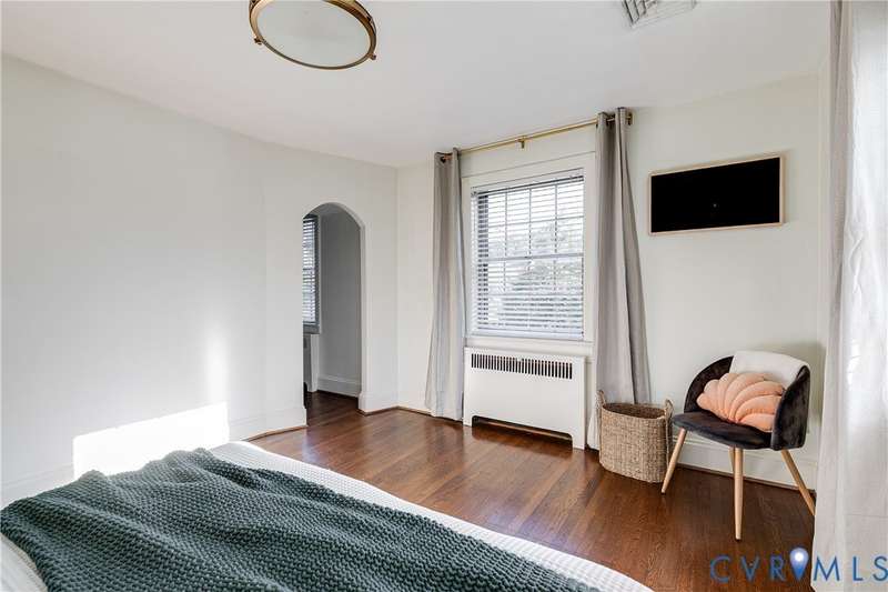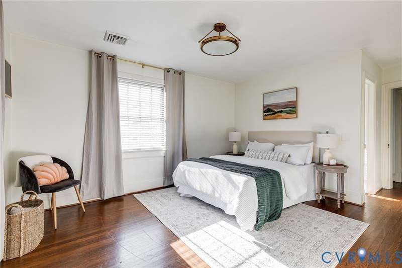 Beautiful brick Colonial on a large flat corner lot on a fabulous block walkable to Stella's! The 1st floor features a proper entry foyer that opens to a large living room with hardwood floors, a wood burning fireplace with a handsome mantle. The living room opens to a wonderful side porch through a French door. The dining room features custom built-in cabinets with granite tops and a designer bubble chandelier. The bright kitchen features Geneva metal cabinets with stainless steel counters and backsplash with a built-in breakfast nook. The Dutch door off the kitchen connects you to the most amazing deep and private outdoor oasis that is surrounded by a brick and iron wall. The 2nd floor features an amazing master suite with spa like bath with separate tile shower, free standing soaking tub and vintage sink, as well as a large walk-in closet. Off of the primary bedroom, there is a spectacular 3rd floor office with vaulted ceiling and a walk-in attic. There are two more spacious bedrooms and a renovated hall bath. The basement features a finished rec room, perfect for TV watching or a playroom. There is a huge utility side to the basement with laundry, storage and a door to outside. Oversized backyard with brick and wrought iron fencing and a brick garden shed is perfect for gardening, relaxing and entertaining with friends. Enjoy the walkability to so many restaurants and playgrounds. There is quick access to downtown and all Richmond has to offer in this quiet and friendly enclave.