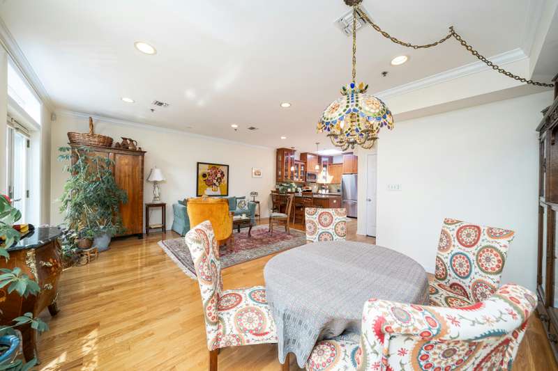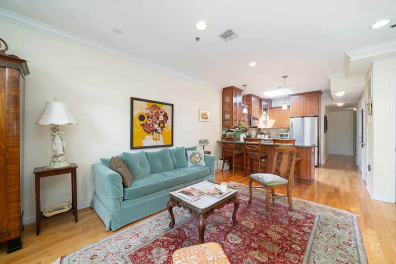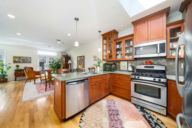Welcome to this stunning and spacious two-bedroom, two-bath condo located in the heart of Hoboken. ; This beautifully maintained home exudes pride of ownership throughout, offering a perfect blend of comfort, style, and functionality--including a rare private rooftop deck with water for your garden and natural gas connection for your gas grill. The bright and airy open-concept seamlessly connects kitchen, living, and dining areas. Oversized windows, a Juliet balcony, and large kitchen skylight flood the space with natural light. The kitchen features custom cabinetry, granite counter tops, a breakfast bar, and plenty of storage--ideal for home chefs and entertainers alike. The living room offers a flexible layout, with ample space to create a third bedroom or a home office while still maintaining a comfortable living and dining area. Both bedrooms are generously sized, with the primary suite featuring a walk-in closet, private terrace and a stylish en-suite bath with skylight. Additional highlights; hardwood floors throughout, central heating and cooling, in-home laundry, and on-site garage parking in a boutique style building. The building has a brand new roof and private roof deck. Perfectly situated just blocks from parks, shops, restaurants, the Light Rail, NYC-bound buses, a short stroll to the PATH and ferry to NYC. This home is a rare find. ;