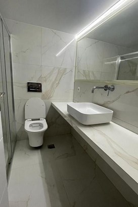 The apartment boasts a modern bathroom that is both functional and stylish, featuring high-quality finishes and fixtures, including a shower, sink, and toilet. The bathroom is well-maintained and spotlessly clean, ensuring that you will always have a relaxing and refreshing experience.