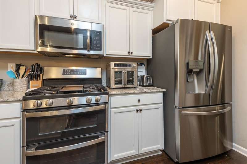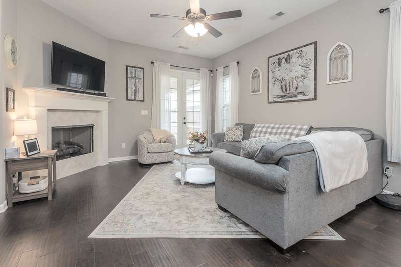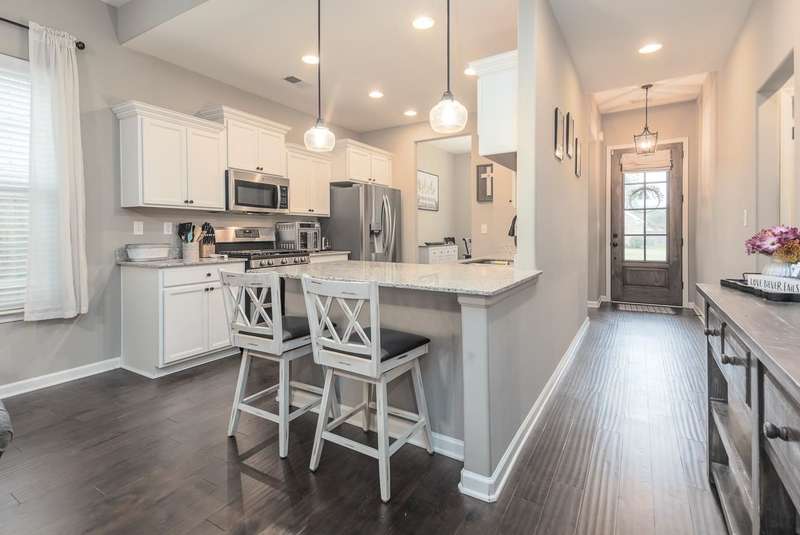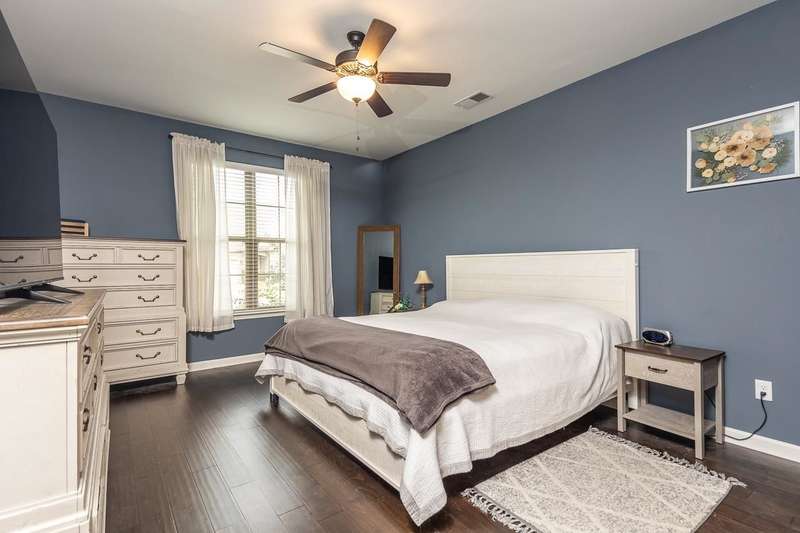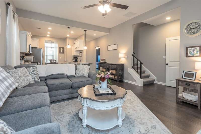 This charming home is just under 5 years old...ready for you to see today. Wide plank hardwood floors throughout most of downstairs. Primary bedroom is down and leads right into primary bath w/separate tub & shower (raised shower head), double vanities, then right into roomy walk-in closet. Both bedrooms upstairs are nice size. Kitchen is a WOW...gas cooking, double oven, stainless steel appliances and cozy breakfast bar. There is also a neighborhood pool w/clubhouse. $350 HOA annual fees.