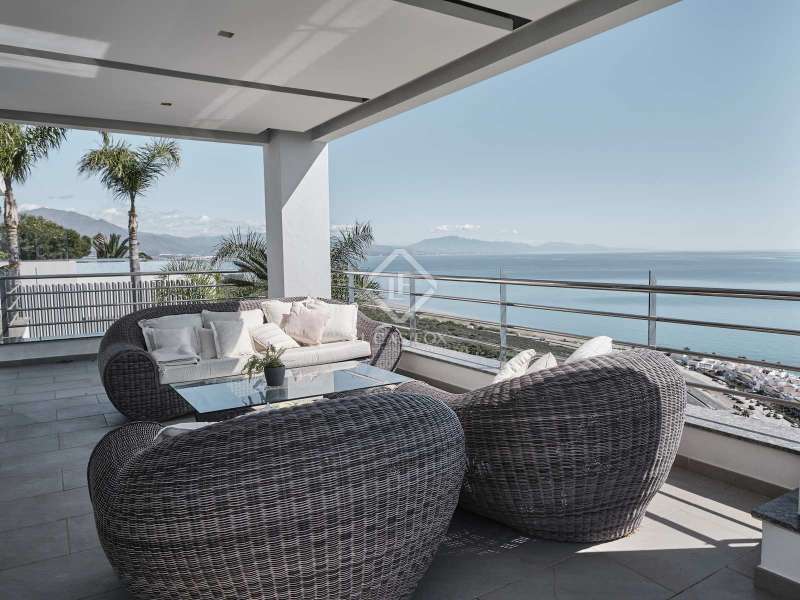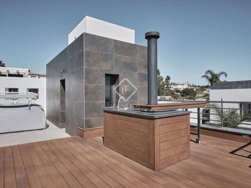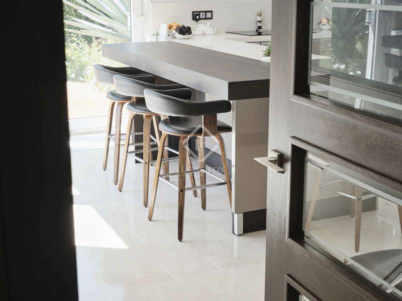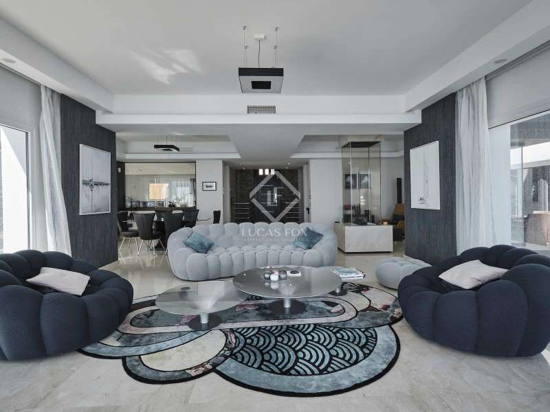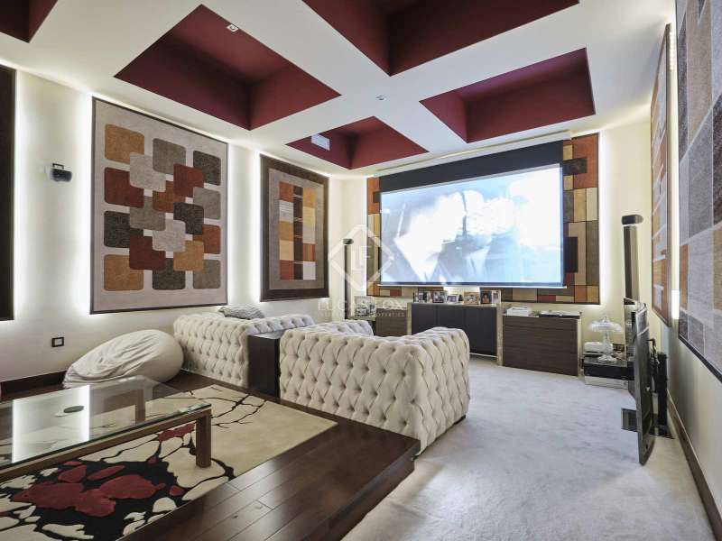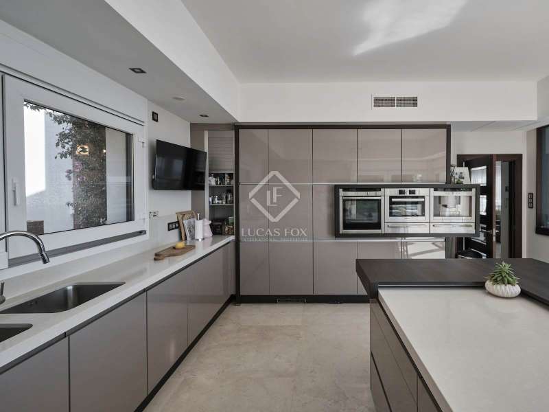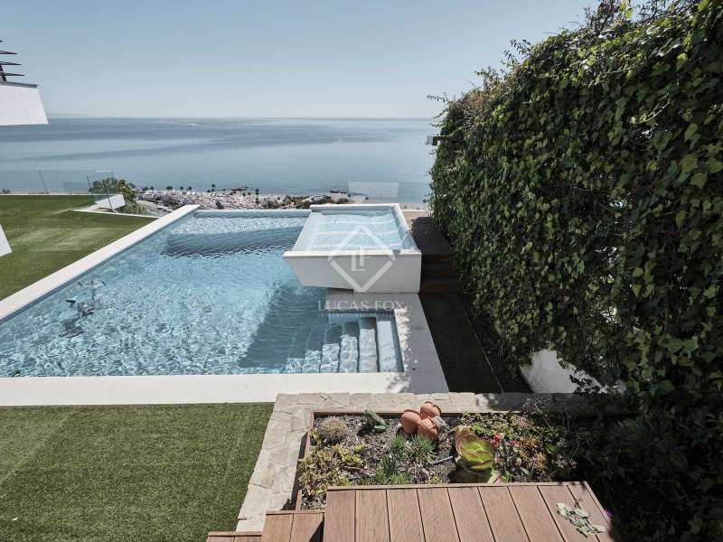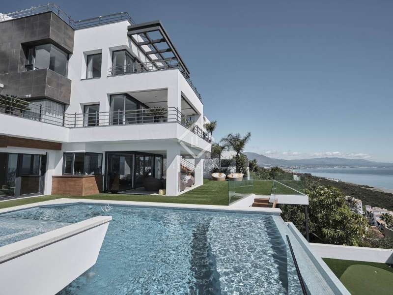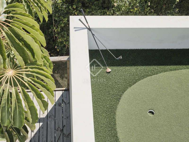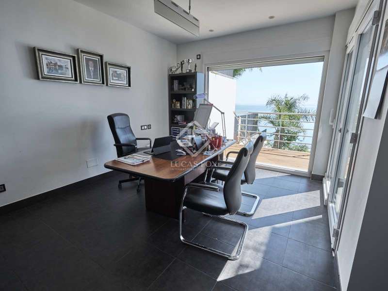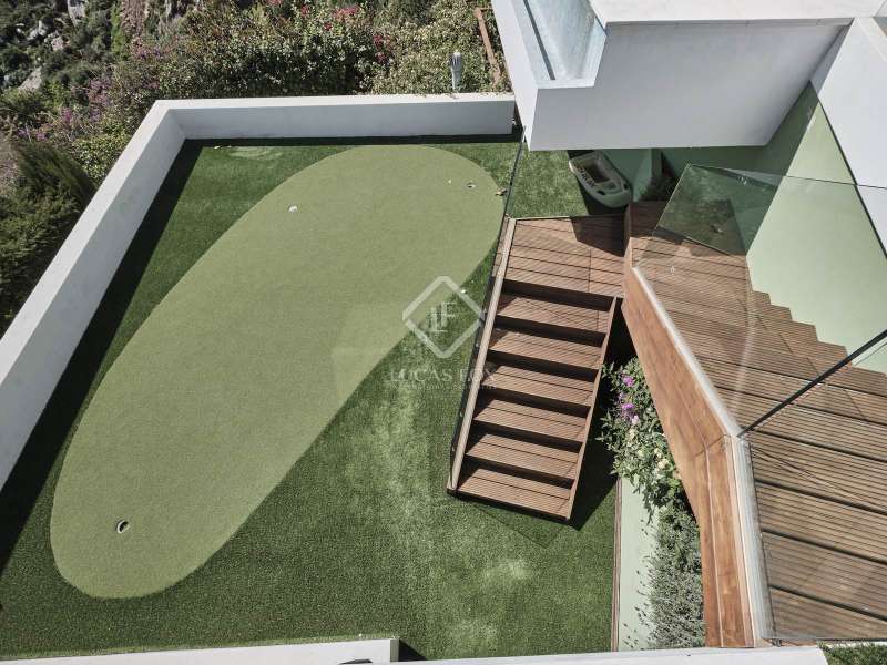 At Lucas Fox we are pleased to offer this modern and luxurious villa with views that will take your breath away. As we step through the grand entrance of this luxurious residence, we find ourselves on the ground floor, enveloped in an atmosphere of elegance and comfort that sets the tone for the rest of our journey. Through our right, the expansive living and dining rooms unfold, a perfect blend of sophistication and warmth. Natural light floods in through large windows and the balcony, enhancing views you cannot find elsewhere. Moving forward, we enter the kitchen. It's equipped with state-of-the-art appliances, ample counter space, and a generous island that encourages culinary exploration and social gatherings alike. In the ground floor we can also find a fantastic cinema room promising unforgettable movie nights and a large office with it's own views and living room. Ascending to the first floor, the master suite awaits, a sanctuary of luxury and comfort. With its spacious layout, it includes a lavish ensuite bathroom, offering privacy and indulgence and a walk-in wardrobe. Bedroom 1, equally luxurious, also features an ensuite bathroom, ensuring comfort and convenience for guests or family members. This floor also introduces direct access to the garage, capable of accommodating three cars. Descending to the basement, we enter the fun area. The living room here is a cozy retreat, leading to a bar and a snooker room where friendly competition and laughter fill the air. Further exploration reveals a spa, a haven of tranquility for rejuvenation, and a gym equipped for fitness enthusiasts. This level also houses three bedrooms, each with its own ensuite bathroom, ensuring privacy and comfort for guests. Access to the outdoor terrace, garden, swimming pool, and mini-golf course invites you to enjoy the outdoors and the home's exquisite landscaping. Finally, the solarium floor crowns the residence, featuring a jacuzzi that offers panoramic views and a sublime relaxation experience. This house is not just a structure; it's a meticulously designed experience, offering a blend of luxury, comfort, and functionality at every turn.