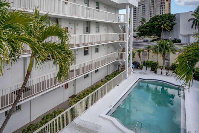 Enjoy front row seats to the boat show & sweeping views of Palm Beach's intracoastal waterway & the Island of Palm Beach from this perfectly positioned, updated 2 bedroom unit in Yacht Club Towers. This rarely available end unit offers a stylish, modern interior featuring an upgraded kitchen & bathrooms, hand scraped wood flooring & a spacious entertainment ready balcony overlooking the water.Highlights include: Assigned parking & ample guest parking, Community pool perfect for a post waterfront walk dip, Boutique building with only 44 residences, EXCEPTIONALLY LOW HOA covers water, sewer, trash, basic cable & building insurance. Small pets & rentals allowed with HOA approvalMinutes from premier shopping & dining, The Kravis Center, & PBIA.Come fall in love with your new view!