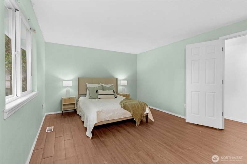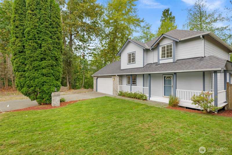 Welcome to this refreshed 3 bed 2.25 bath; residential at the end of a cul de sac. Interior features fresh paint, open concept family room/ dining, Large &bright kitchen,freshly painted cabinets with charming half bath on main floor. Upstairs offers french door entry to primary bdrm with 2 closets &3 piece ensuite, 2 sizable bdrms, full bath at end of hallway. Newly stained wood on stairs! Recent furnace tune up. Equipped with AC! Exterior presents a new face of paint, brand new roof, ample parking with 2 car garage &spot for RV or boat! Newly painted deck & fully fenced yard. LESS THAN 5 Minutes from Lake Tapps! Private access for purchase @Allen Yorke Boat launch w/your new BL address. Minutes from local shopping/grocery & HWY 410