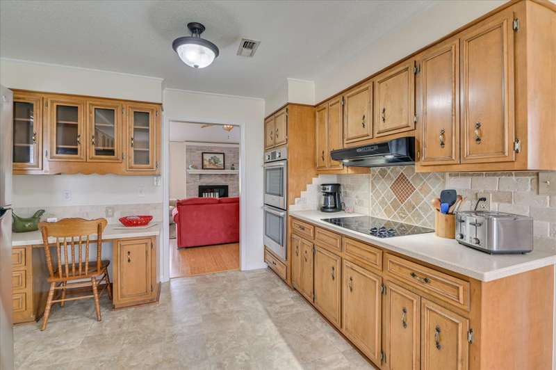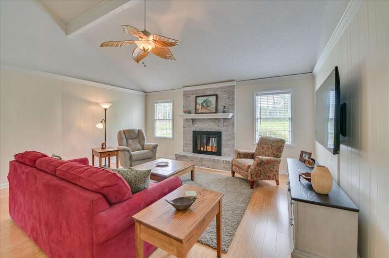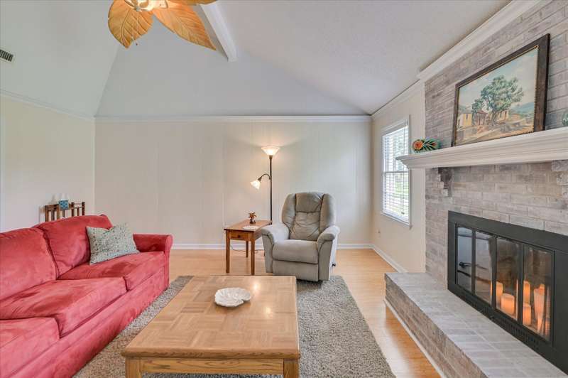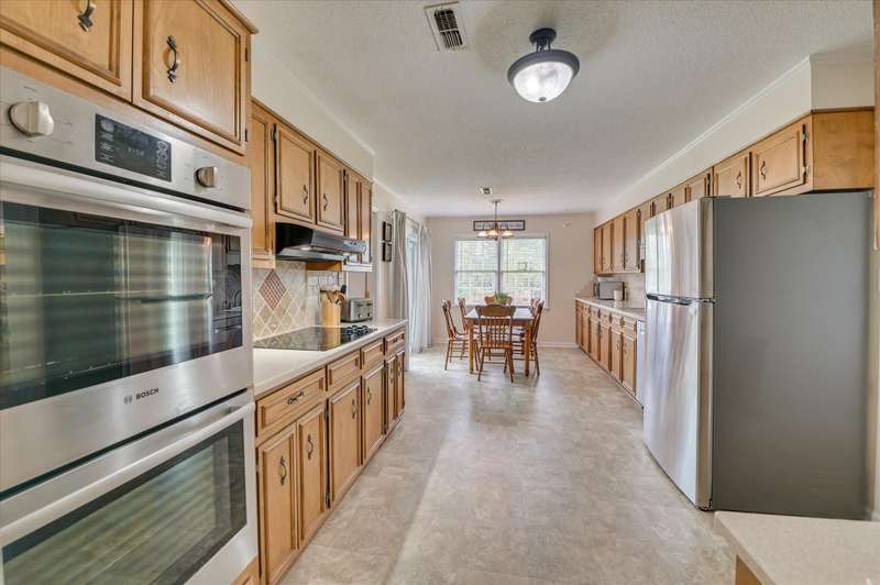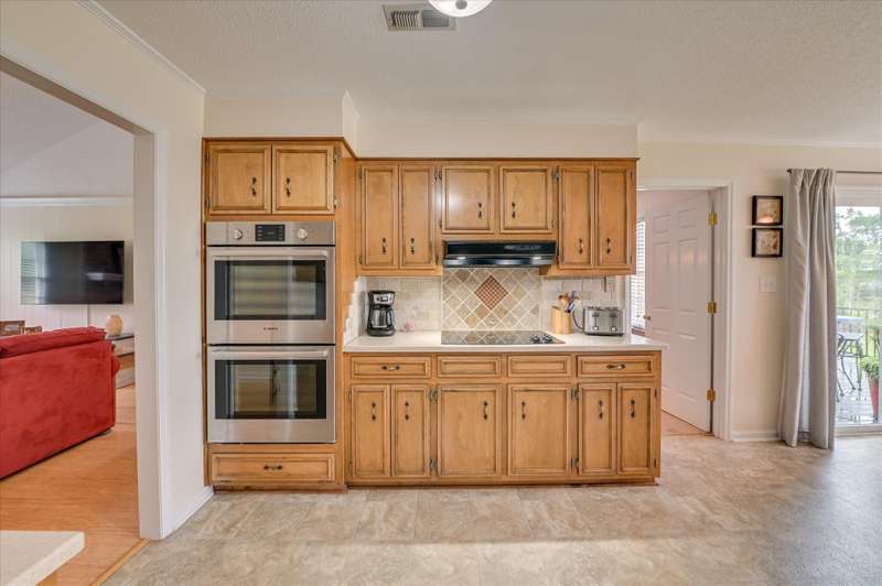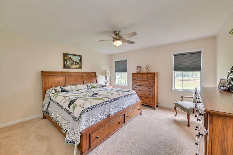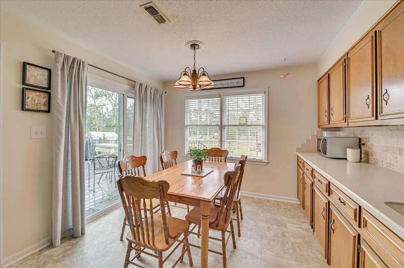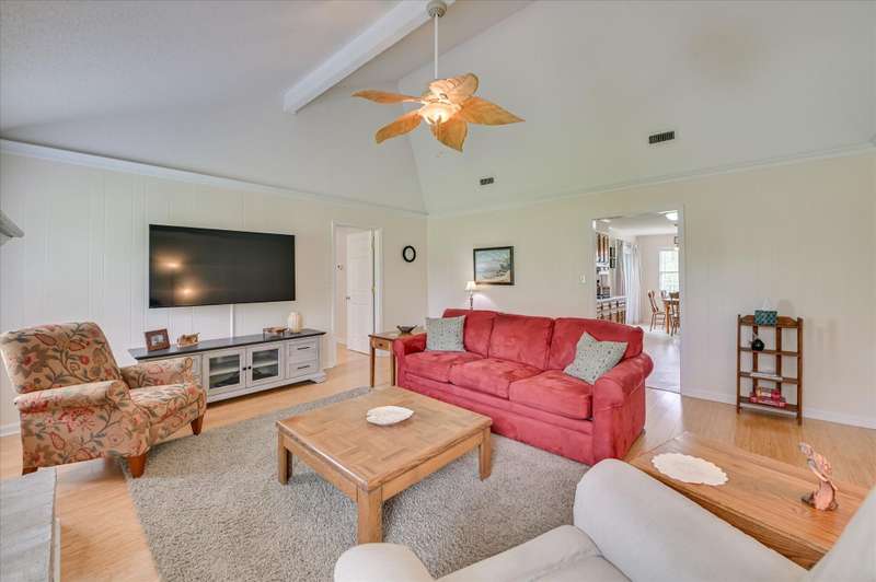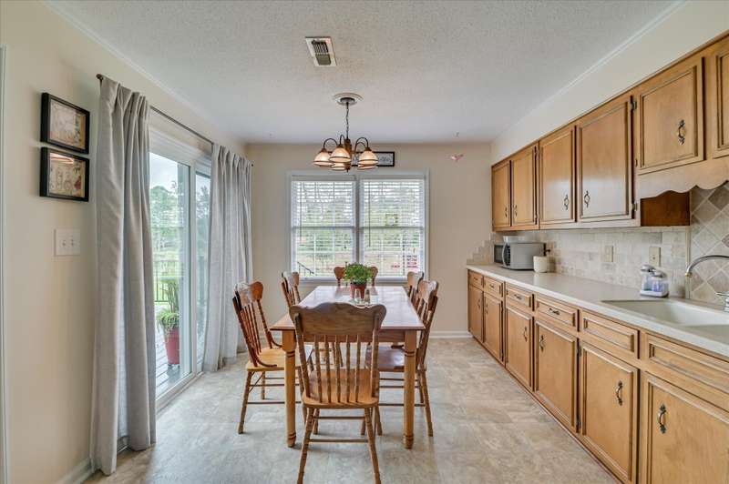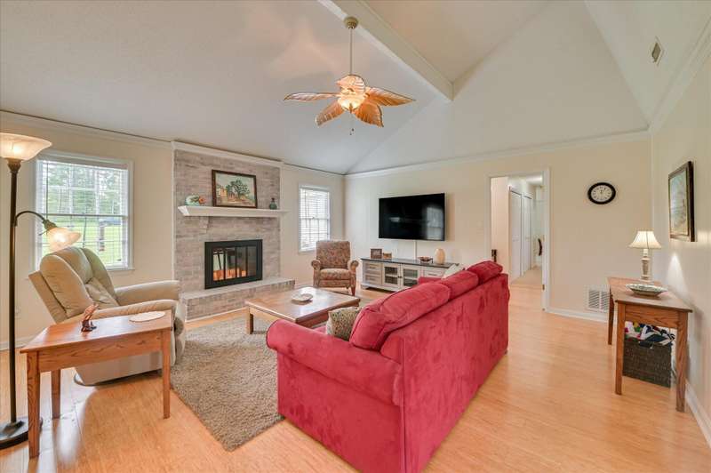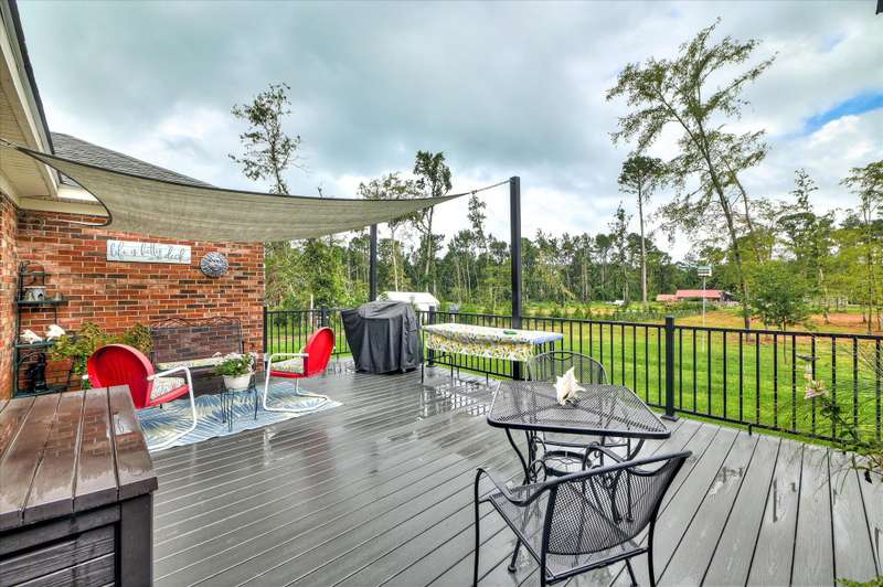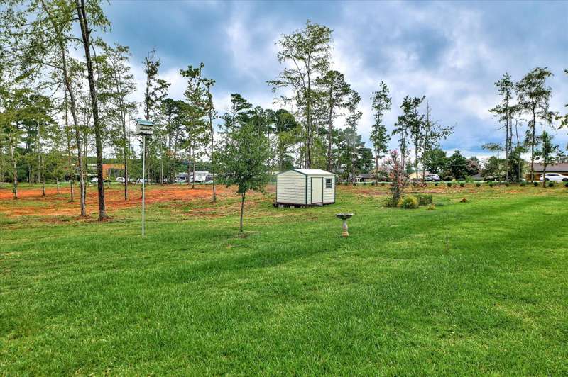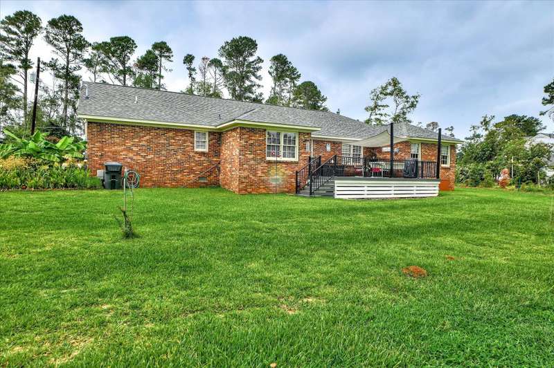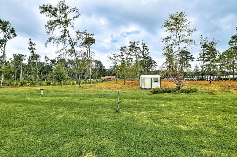 Hard to find ranch on acreage in Evans! Total of 3.17 flat acres off Evans to Locks! Home featuring 4 bedrooms and 2.5 baths w/side entry double car garage. Great room with fireplace, vaulted ceiling and bamboo flooring. Formal living and dining room combination. Kitchen with tons of cabinets, large pantry, corian counter tops, tile backsplash, ss appliances to include double wall oven, and smooth cook top. Kitchen also features a desk area that could be a small office space. Breakfast area with newer sliding glass door leading to oversized trex deck w/sail. One secondary bedroom with vaulted ceiling and computer/office nook. Another secondary bedroom w/double closet and desk area. Primary bedroom w/two closets and view of backyard. Roof new in January 2025, crawl space encapsulated and has dehumidifier, new outbuilding to remain with property. Owner just planted over 100 plants after Hurricane. Utility room in garage perfect for extra storage. Laundry room is 9x7 w/tons of extra storage and cabinets.