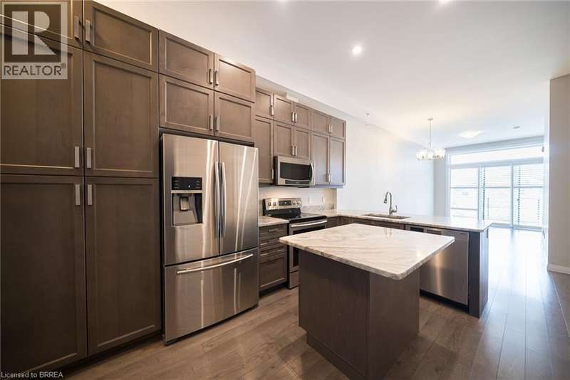 Welcome to The Lofts on Morrell. This stylish and modern condo offers 948 sq ft of thoughtfully designed living space, featuring 2 bedrooms, 2 full bathrooms, and 2 parking spaces. Located in the highly sought-after Holmedale neighbourhood, this suite is perfect for first-time buyers, professionals, investors, or those looking to downsize without compromising on style or function. Step inside to discover sleek, contemporary finishes throughout, with an open-concept layout that’s bathed in natural light and accented by neutral tones. The kitchen is both functional and beautiful, with quartz countertops, stainless steel appliances, ample cabinetry including a custom pantry, and a spacious island—ideal for cooking and entertaining. The bright and airy primary bedroom includes a private ensuite with custom cabinets, while the second bedroom is conveniently located next to another full bathroom with custom cabinetry, perfect for guests or a home office setup. Enjoy summer evenings on your own large private balcony, or take advantage of the impressive rooftop patio complete with a community BBQ and mezzanine-level lounge— ideal for hosting or relaxing. Live in one of Brantford’s most desirable condo communities—The Lofts at Holmedale. (id:7434)