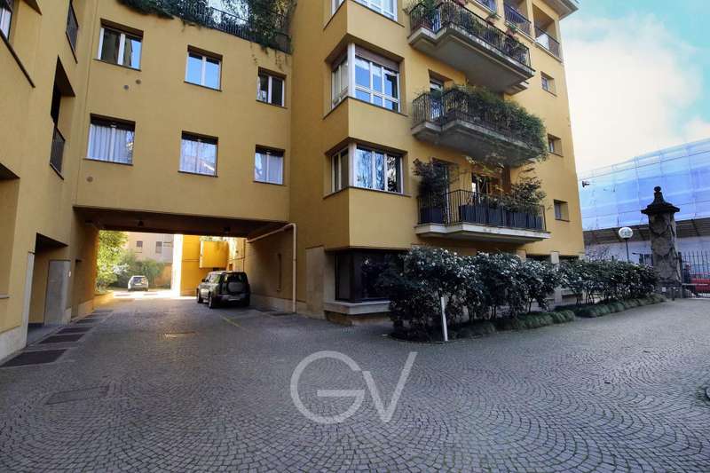 gvr1671 - Via Santa Valeria - Prestigious representative office in historic complex. In the heart of Milan, in the raffinated Sant’Ambrogio neighbourhood, we propose to let an exclusive 255sqm office, located on the ground floor of a stately complex. Immersed in the silence of the internal courtyard with a condominium garden, the office offers a reserved working environment and of high representation, perfect for professional studies, consultant companies or creative activities. The office distinguishes itself for a rational and versatile floor plan, with the well-distributed spaces illuminated thanks to the double exposition. A long central hallway links all the locals that comprehend four operative rooms and two communicating angular rooms perfect for meetings, conferences and coworking. The office also has two bathrooms, a server room and a comfortable closet/archive of great utility. The triple entrances guarantee the maximum flexibility and privacy, making the space perfect for different operative configurations. Centralized heating. The unique office atmosphere is completed by the privileged position: immersed in the silence of the courtyard the space is super quiet, although it is located in one of the most vivid and prestigious areas of Milan. The Cinque Vie represents the historical heart of Milan, a neighborhood rich of exclusive services and charm. Between luxury boutiques, art galleries and raffinated restaurants, the area offers a prestigious context a few steps from the Sant’Ambrogio Basil, from Piazza Affari and from the Sforzesco Castle. Perfectly served by public transports, the office is near to the subway stations MM2 and MM4 Sant’Ambrogio, train station Milano Cadorna at 10 minutes, besides of several tram and bus lines. Ace G – 247,2. € 78.000 annual rental fee - € 10.000,00 condo expenses. The choice of this property contributes to support the mission of Theodora onlus. Photos, texts, floor plans, etc., are purely for illustrative purposes and do not constitute documents with contractual value and presupposition. Giorgio Viganò Real Estate - 027636151 - www.giorgiovigano.com