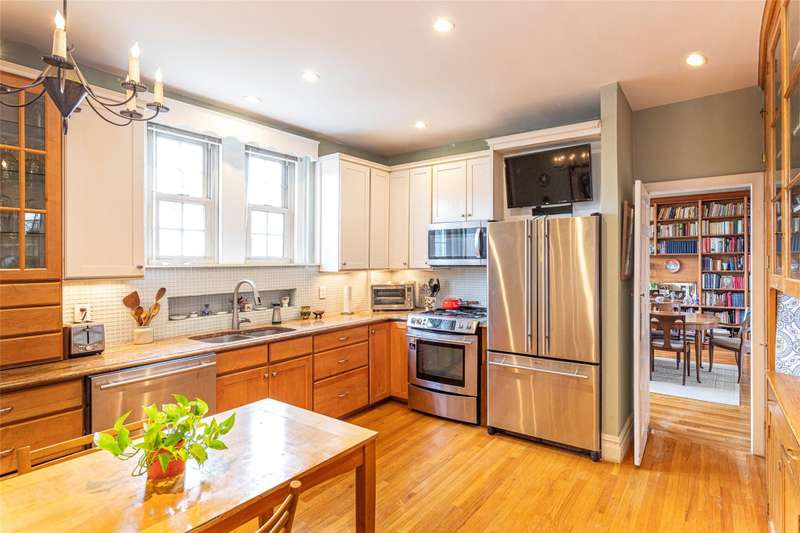 Imagine living in the heart of Bronxville Village, where timeless elegance meets modern convenience. This stunning top-floor three-bedroom, two-bathroom apartment in the sought-after Bronxville Towers offers a tranquil retreat just steps from everything this charming village has to offer. From the moment you enter the beautiful oak-paneled lobby, adorned with leaded glass windows and polished stone floors, you'll be transported to a world of timeless sophistication. Step inside this special apartment and be greeted by an elegant, long hallway that sets the stage for the gracious living spaces within. The expansive living room feels even more airy and bright thanks to the impressive 9-foot ceiling height, complemented by a wall of oversized casement windows that frame picturesque treetop views and beautiful built-in display cabinetry. Opposite the living room, the equally spacious formal dining room provides an ideal setting for entertaining, complete with a wall of built-in bookshelves. The updated kitchen offers abundant storage, enhanced by a handsome butler's pantry featuring beautiful glass cabinets. Its thoughtful layout is perfect for daily meals and spacious enough to handle holiday gatherings. Bronxville Towers is a pet-friendly building, one of the few in the area. For added convenience, the board permits the installation of a washer and dryer within the unit, as well as central air conditioning, upon approval. Additionally a large storage unit in basement is included with your maintenance. Schedule a private showing now to explore this exceptional home.