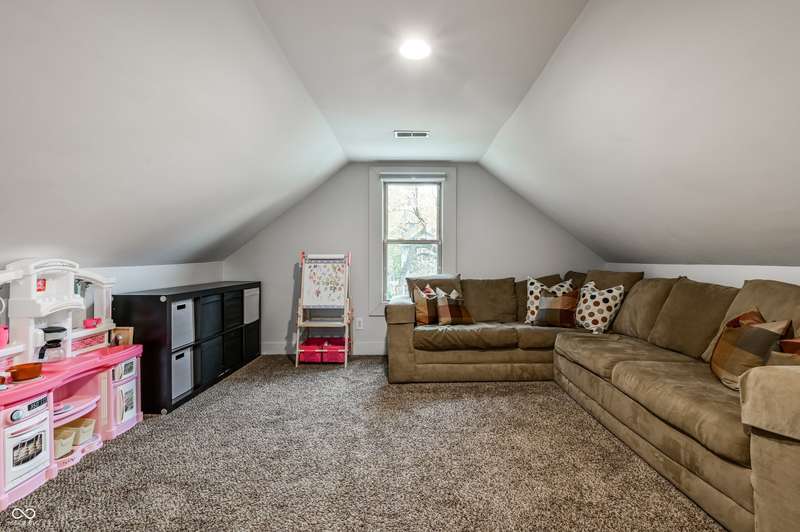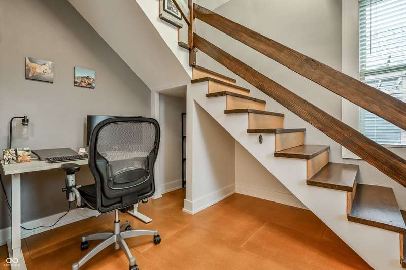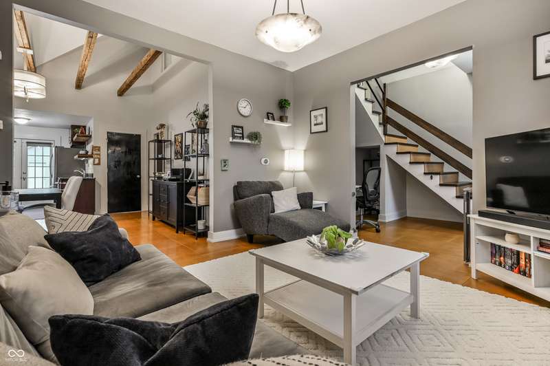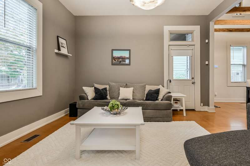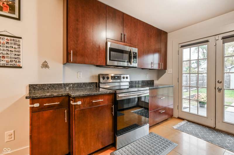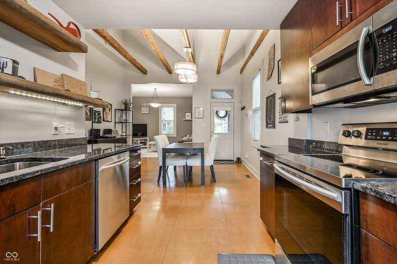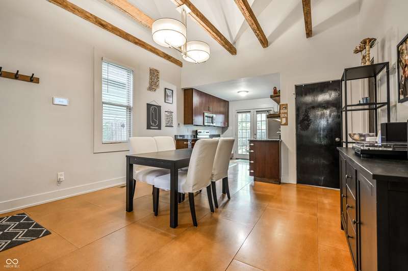 Fully renovated in 2018, this St. Clair Place home blends historic character with a modern urban aesthetic. A vaulted entry and dining area with exposed beams welcomes you in, leading to a sleek kitchen with granite counters, cork flooring, and contemporary cabinetry. French doors open to a fully fenced backyard with refinished deck and 2-car garage. The main level offers a primary suite, living room, and a second full bath with laundry (washer/dryer included). At the base of the staircase, a generous landing with a cozy nook creates an ideal home office space. Upstairs features a versatile bonus room and second bedroom. Enjoy the walkable lifestyle-just steps from Rabble Coffee and Mayfair Taproom, and a quick bike ride to Kan Kan, Amelia's, and more!
