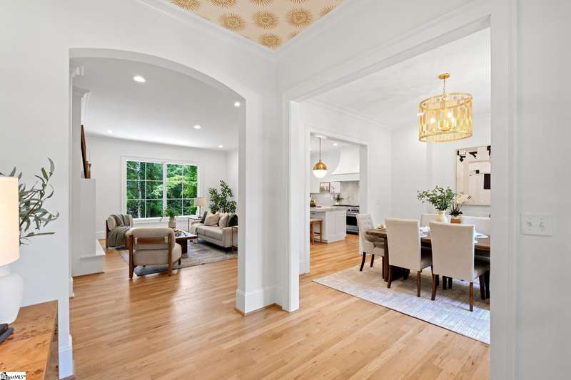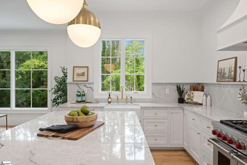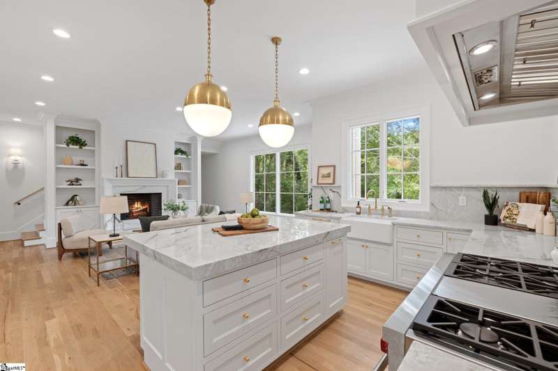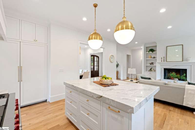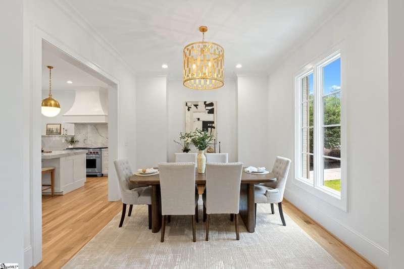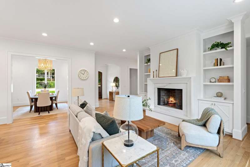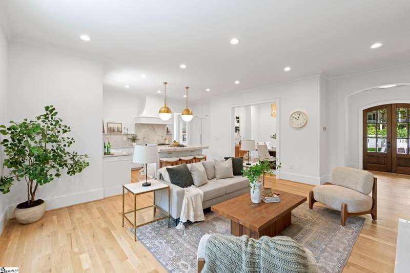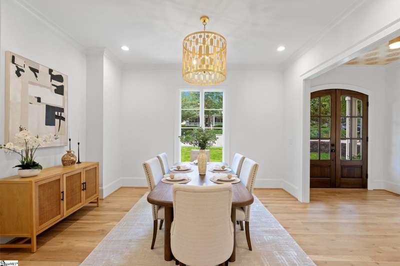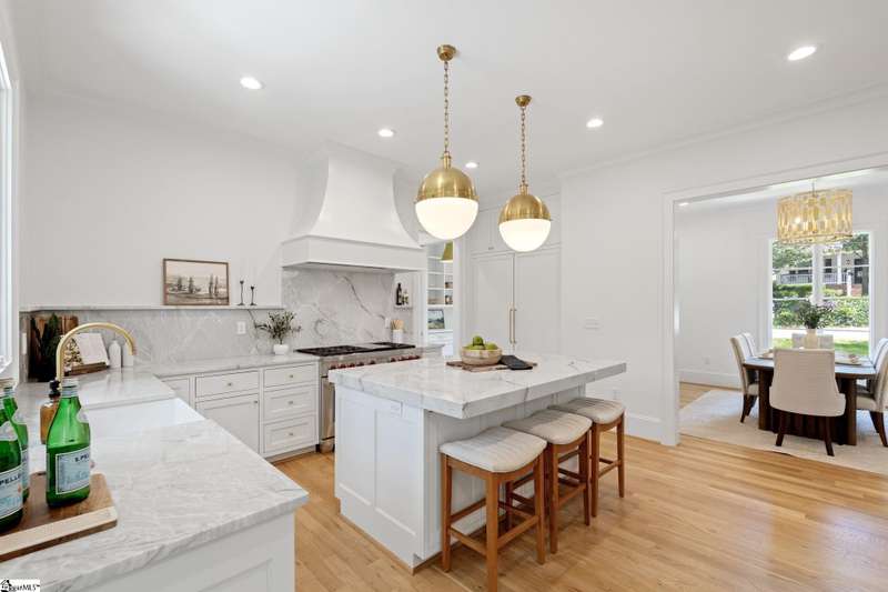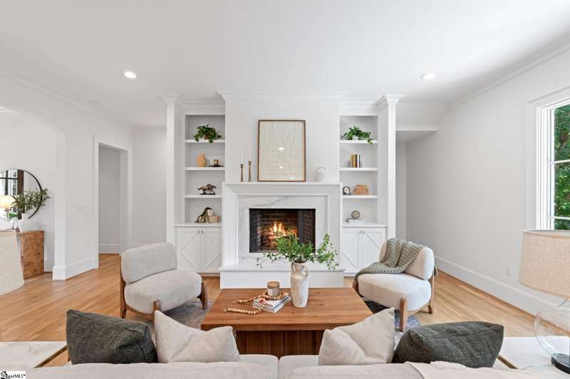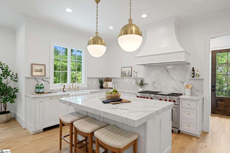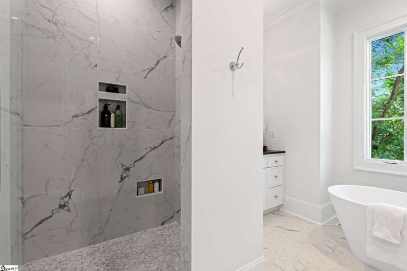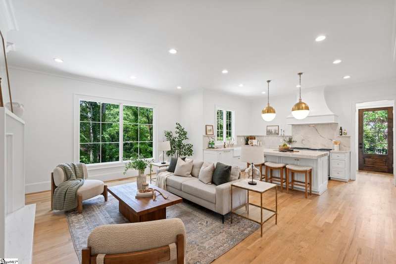 Welcome home to 7 Waccamaw Circle – where timeless elegance meets modern convenience. Nestled on “The Circle”, this home is located on such a desirable street and features ten foot ceilings on the main level. Immediately, you notice the thoughtful attention to every detail which surpasses all expectations for new construction in the Augusta Road area. Beautiful lot, and gorgeous curb appeal greet you as you arrive to walk thru “The gates of 7 Waccamaw Circle”. Lovely tall ceilings, site finished, gorgeous white flooring and a floor plan that is perfect for almost any need. This home features an amazing kitchen with quartzite countertops and backsplash, built-in panel ready side by side refrigerator and freezer, amazing Wolf gas range with double ovens and a center island that is perfect for serving and entertaining. Kitchen opens into a great room with fireplace and lovely surrounding mantle. With THREE separate areas for laundry, this main level laundry room is sophisticated, yet comfortable for a main level location. Additional main level mud room for added storage. Primary bedroom suite on the main level with spacious bedroom and gorgeous bathroom complete with tiled shower, double vanities with sinks and a separate soaking tub and two walk-in closets. Two incredible walk-in closets with melamine custom closet organizers. Upstairs, features nine-foot ceilings and three spacious bedrooms – each with en suite bathrooms – ALL with designer tile and light fixtures throughout! Separate stackable laundry closet on the upper level as well as a rec room with added cabinetry for excellent storage and beverage fridge. Lower level offers tremendous flexibility. The lower level offers nine-foot ceilings and could function as a separate guest or in-law suite and comes with its own exterior access door. The lower level also boasts a game room/office/rec room/gym, full kitchenette, coffee bar, laundry, office/hobby room, bedroom and full bathroom. Don’t miss the pet wash station in the ATTACHED two car garage! Love to entertain? This home is for you… with this amazing firepit and pebble patio and level back yard – you are sure to love this home! Schedule your chance for a private tour today! All convenient to Prisma’s Memorial hospital, downtown Greenville, Augusta Street shopping and dining and zoned for Augusta Circle Elementary School.