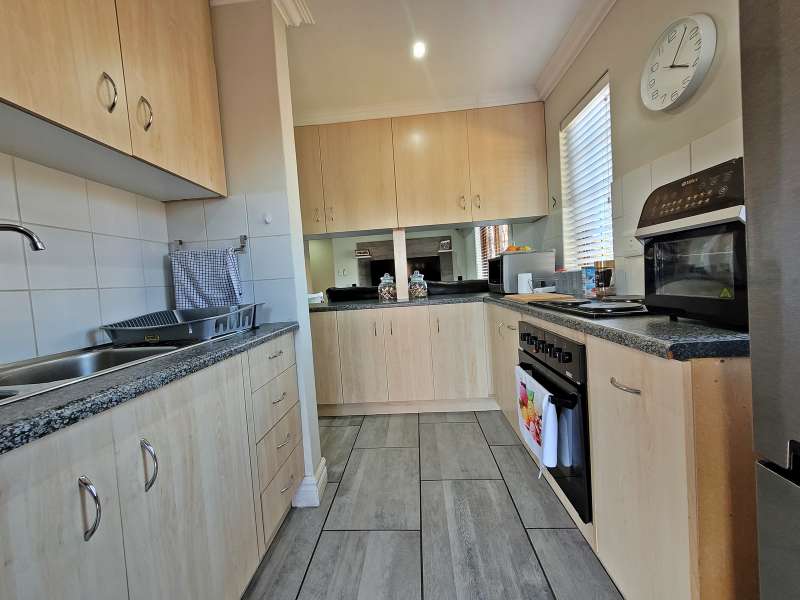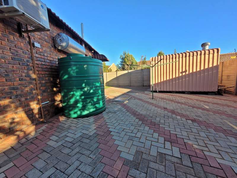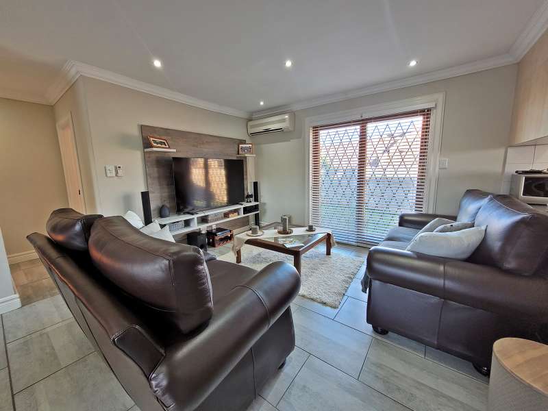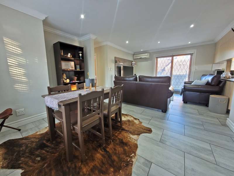 Welcome to this stunning townhouse with a picturesque exterior and an expansive yard that will take your breath away. Situated in a charming neighborhood, this residence offers a perfect blend of modern elegance and comfort. Upon entering, you'll be greeted by an open plan lounge and dining area, where natural light floods in through large windows, creating a warm and inviting atmosphere. The seamless flow between these spaces makes it ideal for entertaining guests or simply enjoying quality time with your loved ones. Adjacent to the dining area is a decently sized kitchen, thoughtfully designed with functionality in mind. While it may not be overly spacious, it offers ample storage and counter space, ensuring that cooking and meal preparation remain a pleasure. This townhouse boasts three comfortable bedrooms, providing plenty of space for family members or overnight guests. The master bedroom features an en-suite bathroom, offering privacy and convenience. The additional two bedrooms share a well-appointed bathroom, ensuring that everyone has their own personal space. To keep you comfortable during warm summers and cooler winters, the property is equipped with three air conditioners strategically placed throughout the home. This ensures that each room remains at the perfect temperature, catering to individual preferences. For those concerned about water conservation, a JoJo tank is installed, allowing you to collect and utilize rainwater for various household needs, reducing your environmental impact. The convenience of an outside laundry room adds an extra touch of practicality, providing a dedicated space for laundry tasks without encroaching upon the living areas. To accommodate your vehicles and offer additional storage space, a double garage is included, ensuring that your cars remain secure and protected from the elements.