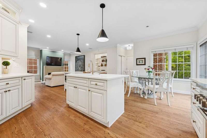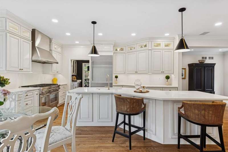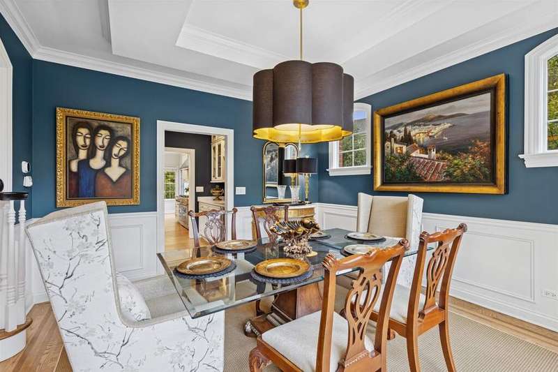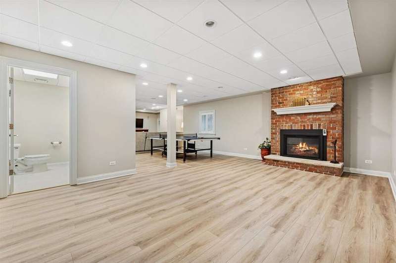 Situated on a quiet, tree-lined street in Old Town Western Springs, just moments from downtown, this impeccably updated all-brick residence at 1318 Reid Street offers a rare opportunity to enjoy refined living in one of the area's most desirable neighborhoods. Combining classic architectural charm with sophisticated modern updates, this home, having undergone major renovations in 2023, is thoughtfully designed for both grand-scale entertaining and comfortable everyday living. Step inside to a welcoming foyer highlighted by a sweeping curved staircase, setting the tone for the home's elegant interior. The gracious formal dining room and inviting living room, complete with a fireplace, offer ideal spaces for hosting, while the heart of the home is the fully renovated gourmet kitchen. Featuring top-of-the-line Thermador appliances, a large center island, custom cabinetry, double ovens, and both a walk-in and butler's pantry, this chef's kitchen flows seamlessly into a warm and stylish family room accented by a redesigned fireplace and custom built-ins. Sliding glass doors open to an expansive stone patio with two separate entertaining areas and a built-in natural gas line, perfect for al fresco dining and outdoor gatherings. A custom mudroom area connects the main living area to the extra-deep 3-car garage, offering both practicality and style. Upstairs, soaring 10- and 12-foot ceilings create an airy, light-filled ambiance. The second level includes four spacious bedrooms, four full bathrooms, and a newly expanded laundry room. The luxurious primary suite is a private retreat, boasting two generous walk-in closets, a separate sitting area, and a newly renovated spa-inspired bathroom with heated floors, dual vanities, a large soaking tub, and high-end designer finishes. The fully finished lower level adds incredible versatility, offering a second family room, a cozy fireplace, a full bath, a large recreation space, a dedicated game or dining area, and a secondary exterior access for added convenience. Throughout the home, you'll find rich hardwood floors, custom lighting, vaulted and tray ceilings, and oversized windows that flood the space with natural light. Perfectly located just a short walk to downtown shops, restaurants, Spring Rock Park, award-winning schools (John Laidlaw and McClure), a pool, and the Metra station, this exceptional property delivers the ultimate blend of luxury, location, and lifestyle. Welcome to 1318 Reid Street-Western Springs living at its finest.