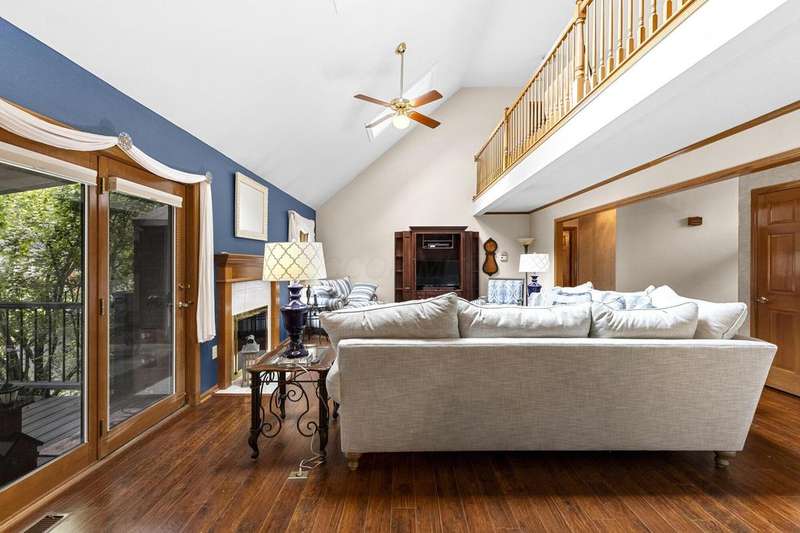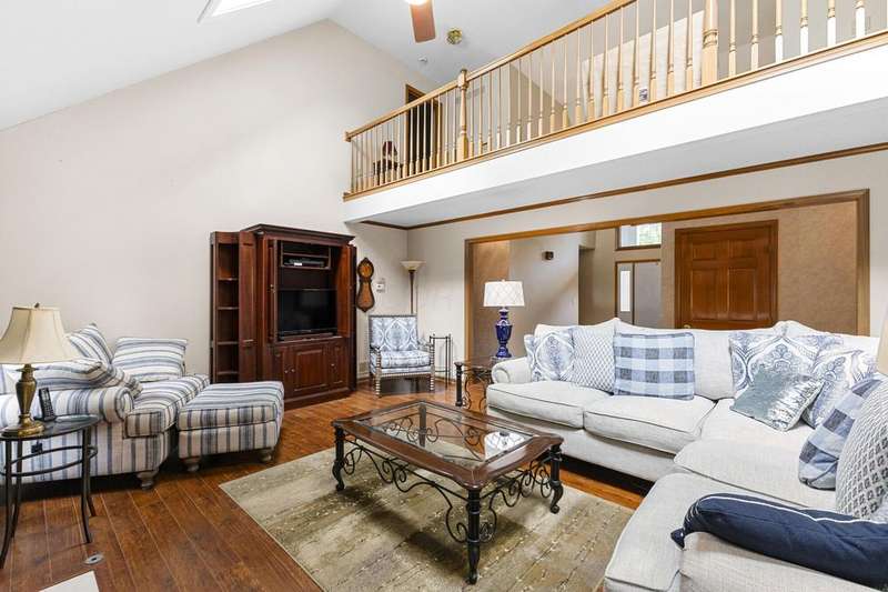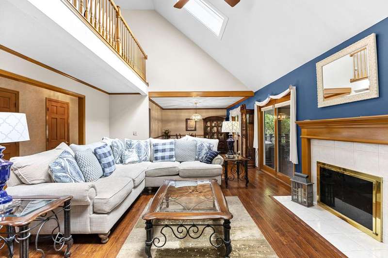 Located in Crystal Lakes. Two story entry leads into great room with skylights and vaulted ceiling. First floor includes owner's suite, office/den, and laundry room. Both guest rooms each have two closets and a separate on-suite bathroom. Rear of home features maintenance free vinyl deck with Suncraft electric awning, patio with hot tub and storage shed (12'x8'). Home includes many updates throughout including Generac generator.
