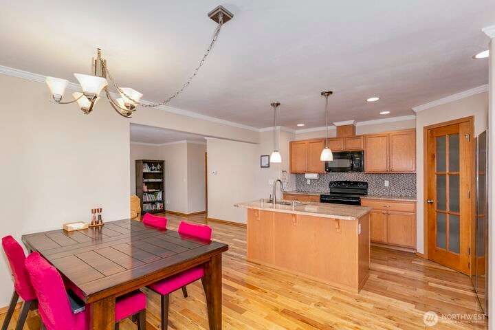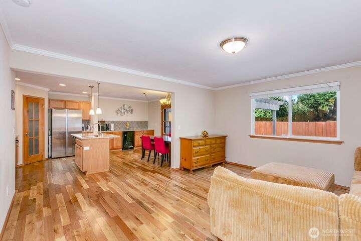 Welcome to Camden Court, a private enclave near a number of local amenities. Step into this nearly 2,000 sq ft home offering 4 bedrooms & 2.5 bathrooms, designed with comfort & convenience in mind. Enjoy gatherings in the open living spaces with wood floors throughout. The spacious kitchen boasts granite countertops, stainless steel appliances, pantry with superb storage, built in buffet area with wine fridge and bar seating. The adjacent dining & living areas allow for gatherings of all sizes. All bedrooms are upstairs highlighted by the large primary bedroom with en suite bathroom and massive walk in closet. The 4th bedroom is set up as an office with built in desk & shelving. Minutes to Boeing & I5. Low maintenance backyard.