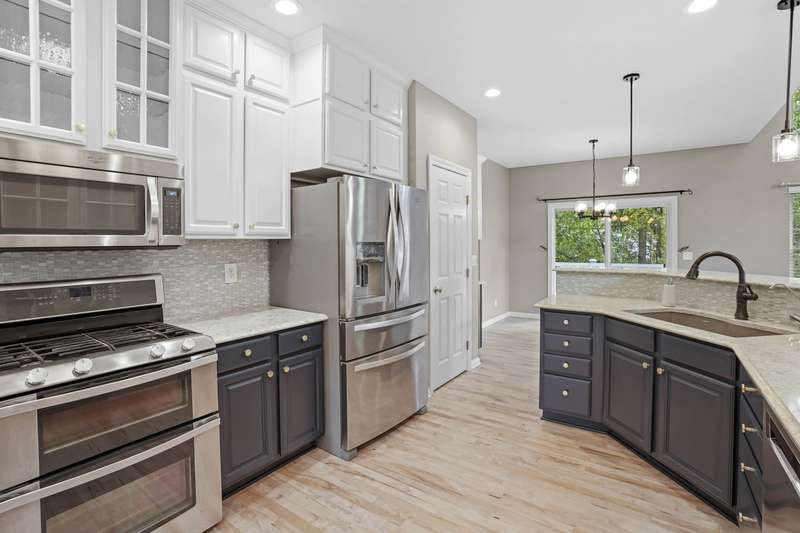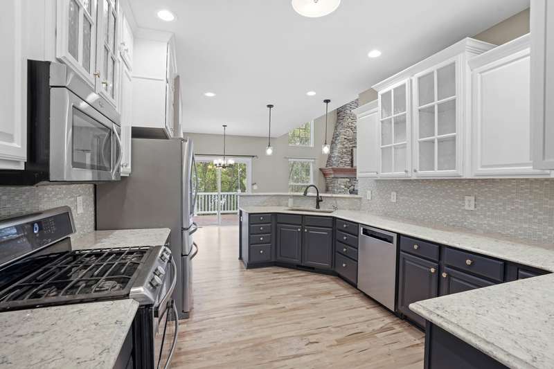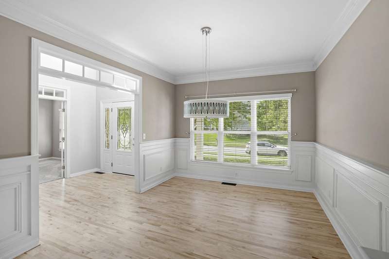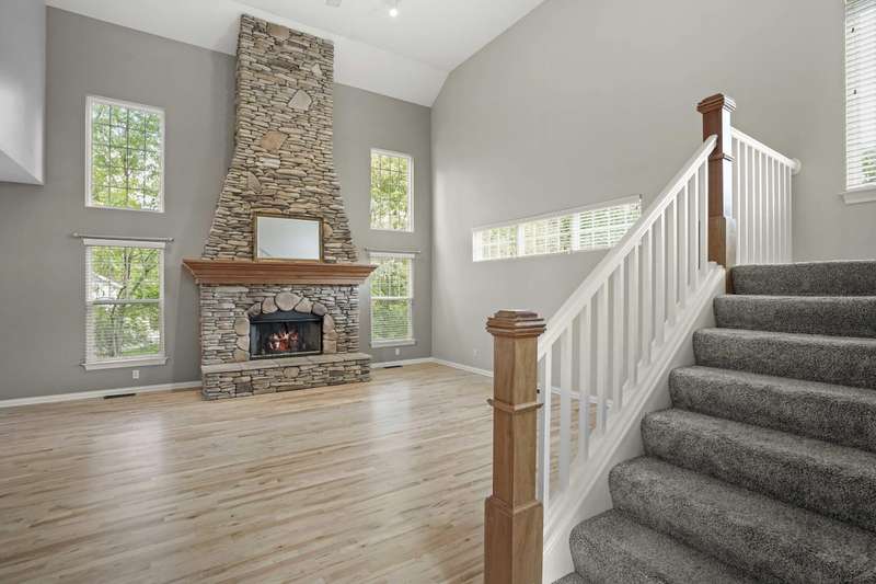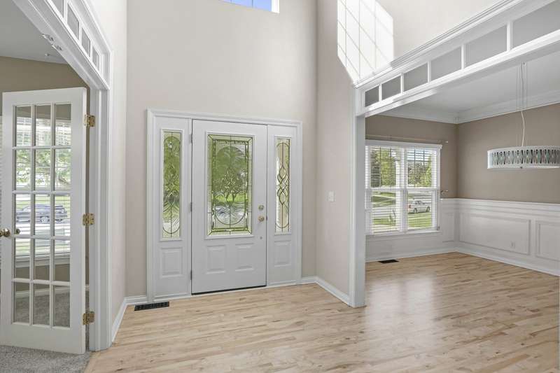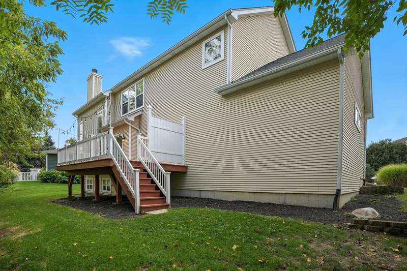 Step into the impressive two-story foyer and be greeted by the warmth of newly stained hardwood floors that flow throughout the main living areas. The living room invites you to gather around the floor-to-ceiling stone fireplace, perfect for cozy family evenings or entertaining guests. The heart of the home--the kitchen--features stainless steel appliances, abundant counter space, and sliding doors that open to a rear deck, seamlessly blending indoor and outdoor living. Share meals and memories in the formal dining room adorned with elegant crown molding and wainscoting, or work from the private office with French doors, offering quiet focus while staying connected to home life. The primary suite is a true retreat, complete with a luxurious jetted tub, separate shower, and a generous walk-in closet. Three additional guest bedrooms provide comfort and privacy for family or visitors. The finished daylight basement offers a spacious family room and full bath, perfect for movie nights, playtime, or hosting friends. Outside, a yard provides room for kids and pets to play, while the 3.5-car garage ensures plenty of storage. Located near excellent schools, parks, shopping, and with easy access to major highways, this home offers both convenience and a strong sense of community. Don't miss the opportunity to make this exceptional home yours--schedule your private tour today and experience all it has to offer