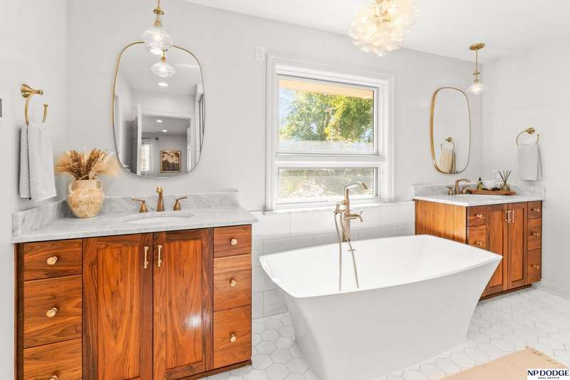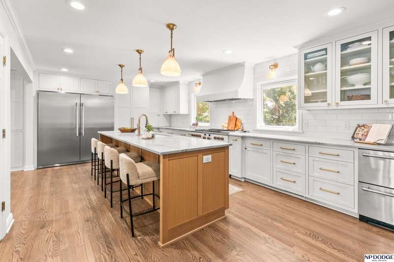 This stunning 2-story home in the heart of West Fairacres has been transformed over the past decade, most renovations from 2020, 2025, into a functional masterpiece blending luxury, leisure, & convenience. Nearly $300,000 in upgrades include a chef's kitchen w/ floor-to-ceiling custom cabinetry, quartzite countertops, GE Caf�© 6-burner range, dual KitchenAid dishwashers, & oversized fridge/freezer. The primary suite offers a spa-inspired bath w/ heated marble floors, soaking tub, steam shower, & walnut cabinetry, plus walk-in closets in all 2nd-floor bedrooms. A redesigned main bath & added 2nd-floor laundry enhance everyday comfort. Updates include a new roof (2025), HVAC systems (2020), James Hardie siding, & refinished hardwoods. Outdoor living shines w/ a stone firepit, patio, & a beautiful four-season room off the back overlooking the landscaped corner lot. The oversized 3-car side-load garage includes wiring for a heater & a floor drain, perfect for Nebraska winters.