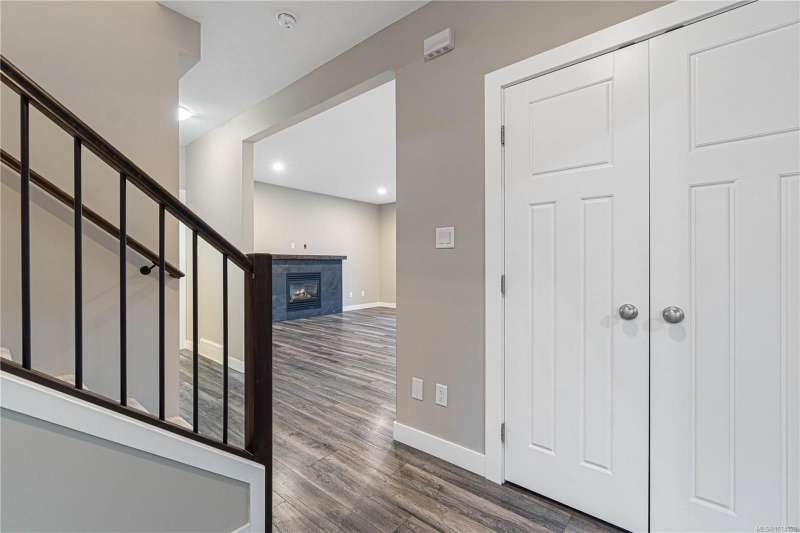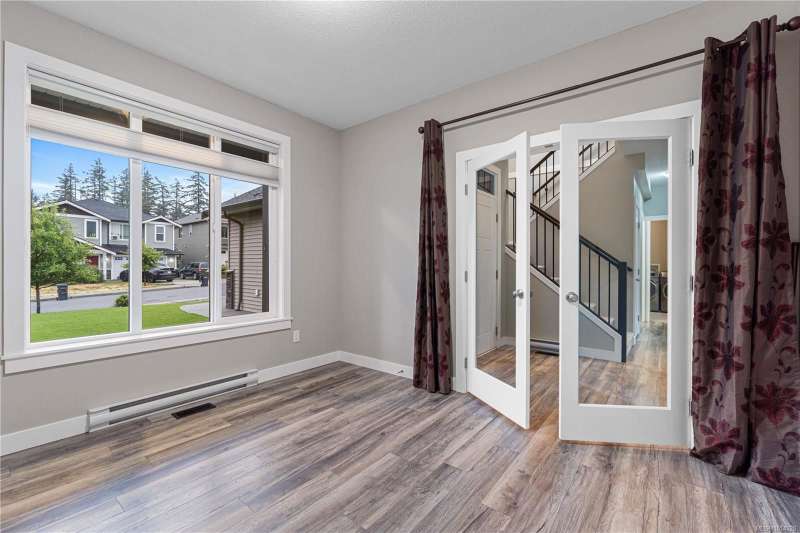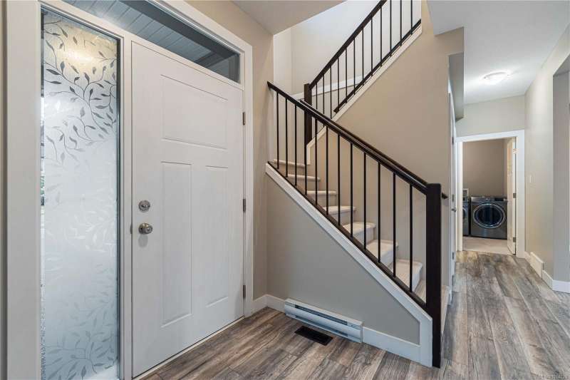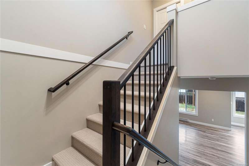 Welcome to this bright and spacious 3 bedroom plus den, 3 bathroom home, designed with families in mind. Just 10 years old, this home offers the comfort of modern living with a thoughtful layout. The main level features a freshly painted open-concept living space with a cozy gas fireplace, ideal for family gatherings and entertaining. The kitchen and dining area flow seamlessly to the backyard, creating an inviting space for kids to play while parents enjoy indoor-outdoor living. Upstairs, you'll find three generous bedrooms, including a private primary suite, providing the perfect retreat at the end of the day. The versatile den on the main floor is perfect for a home office, playroom, or guest space. With a double garage, plenty of storage, and a prime location walking distance to both elementary and high schools. With Departure Bay Beach only a 20-minute walk away, weekends can be filled with sand, sun, and seaside adventures.