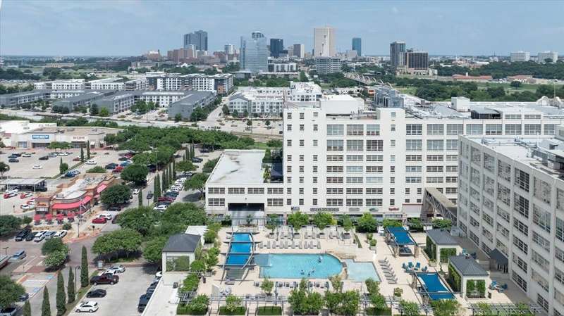 Enjoy the carefree, lock-and-leave lifestyle in this beautifully appointed 1 bedroom, 1 bath residence featuring 1,263 sq ft of spacious, open-concept living. The kitchen and living area flow seamlessly, highlighted by an oversized island with breakfast bar, sleek tile backsplash, and wood and tile flooring throughout.The primary suite includes a bonus flex space, perfect for a home office or reading nook, along with a custom IKEA built-in wardrobe, spa-inspired bathroom, and designer wall coverings. Electric shades in the living area add a modern touch, while expansive windows offer stunning views of 7th Street and the vibrant Montgomery Plaza corridor. This home comes with two reserved parking spaces and access to an array of luxury amenities, including a 24-hour concierge, resort-style pool with cabanas, state-of-the-art fitness center, private movie theater, and elegant resident lounges. Located in the tower closest to the dog park, this unit offers convenience and comfort in one of Fort Worths most desirable communities.