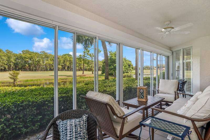 Beautifully remodeled light bright lake front property. Totally furnished & (turnkey) with sharp , new, current, modern, fresh, open and stylish design ...... Remodeled baths , showers and vanities with lovely fixtures . New kitchen, quartz counters, SS appliances, light bright space. ..... Great views of Wyndemere's golf and lakes. Spacious screened lanai , wood -look plank flooring throughout the living area. Safe & secure with electronic shutters for storms while away..... This lives like a home with all the work done for you..... Just move right in & enjoy Naples.