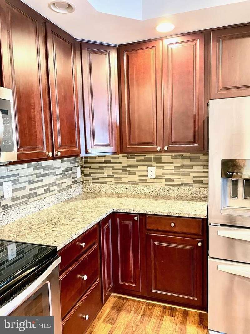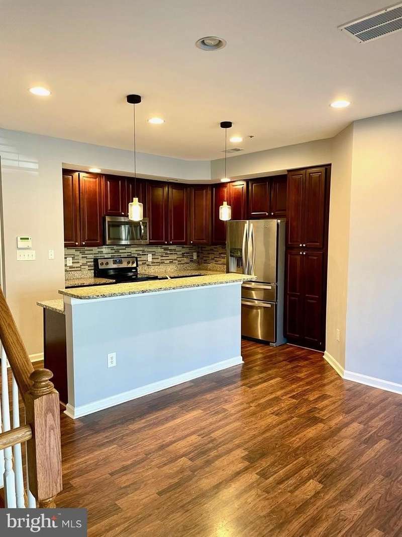 Richfield Station Gem - Light filled and Move-In Ready! This beautifully maintained home features abundant natural light & recessed lighting throughout. The upper-level flooring, fresh paint, and stairway carpeting were updated in February 2024. The main level boasts sleek laminate wood flooring, creating a modern yet warm feel throughout the open concept living & dining space. The kitchen is a standout, with upgraded granite countertops, a breakfast bar, stainless steel appliances, and wood cabinetry---perfect for entertaining or everyday living. Upstairs, the spacious owner's suite includes two large walk-in closets, a tray ceiling and a private en-suite bath with separate shower and double sinks. Two additional bedrooms share a nicely sized hall bath. The laundry room is conveniently located on the upper level. Additional features include ceiling fans, a rear-entry garage with a private driveway, and one assigned front parking space for a total of three (3) dedicated parking spaces. The Richfield Station Community offers tennis & basketball courts, a tot lot/playground, nature trails & a boardwalk that leads into Chesapeake Beach. You're a short walk to the Northeast Community Center & nearby Rod ""N"" Reel, minutes from North Beach & Chesapeake Beach shops, dining, marinas, and waterfront charm. All within an hour of Joint Base Andrews, D.C., Annapolis, Solomon's Island, and PAX River -- ideal for both work & play.
