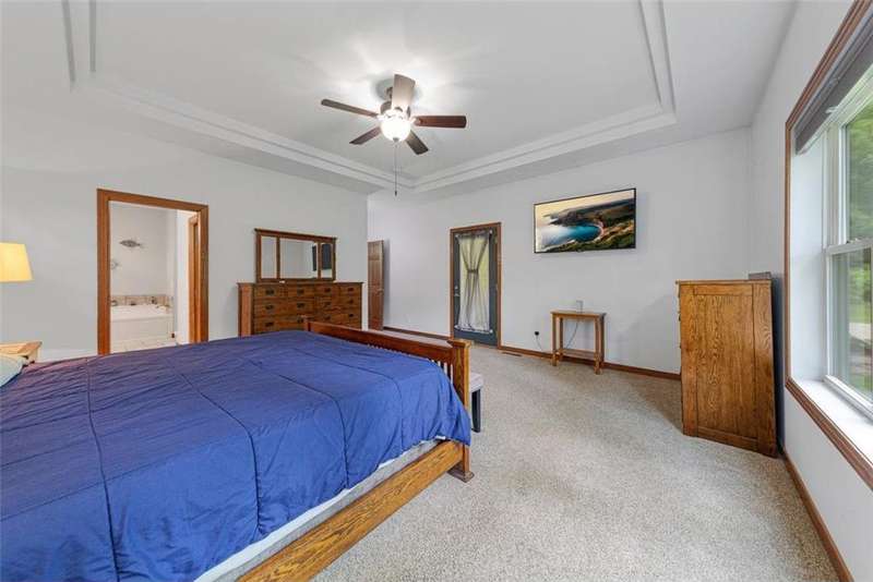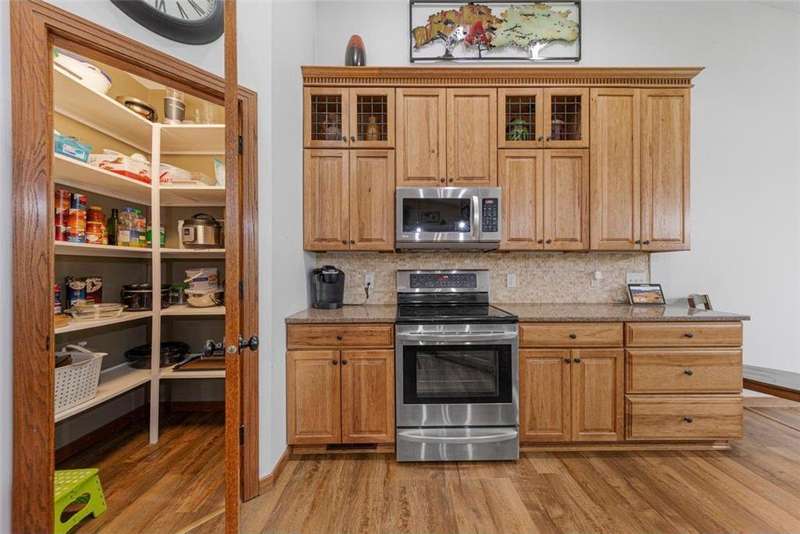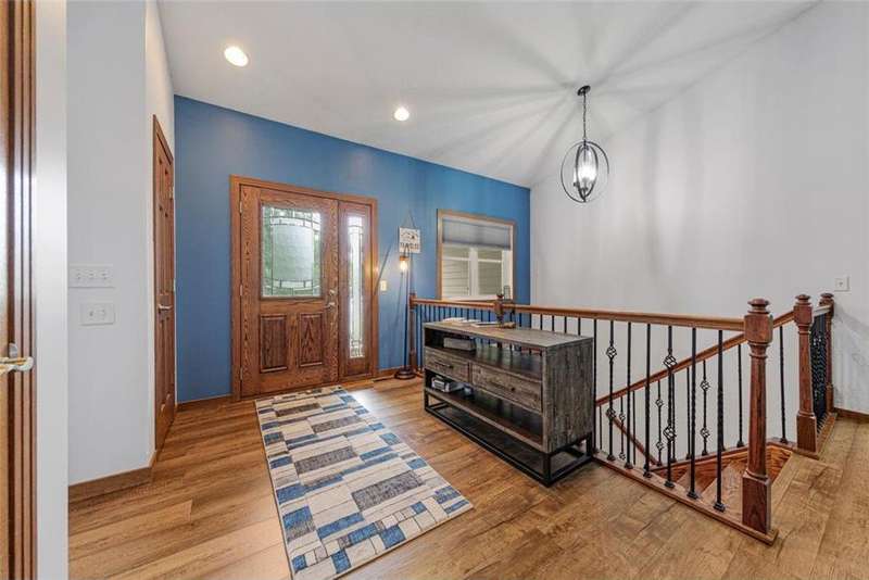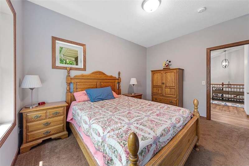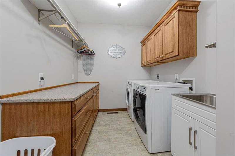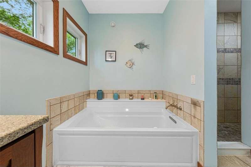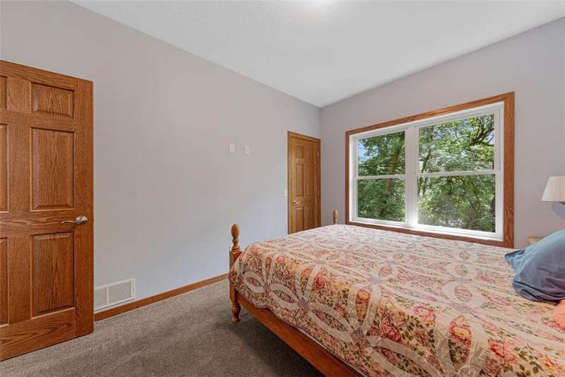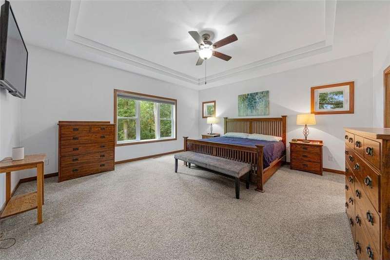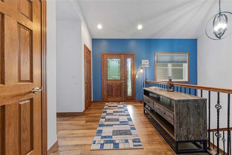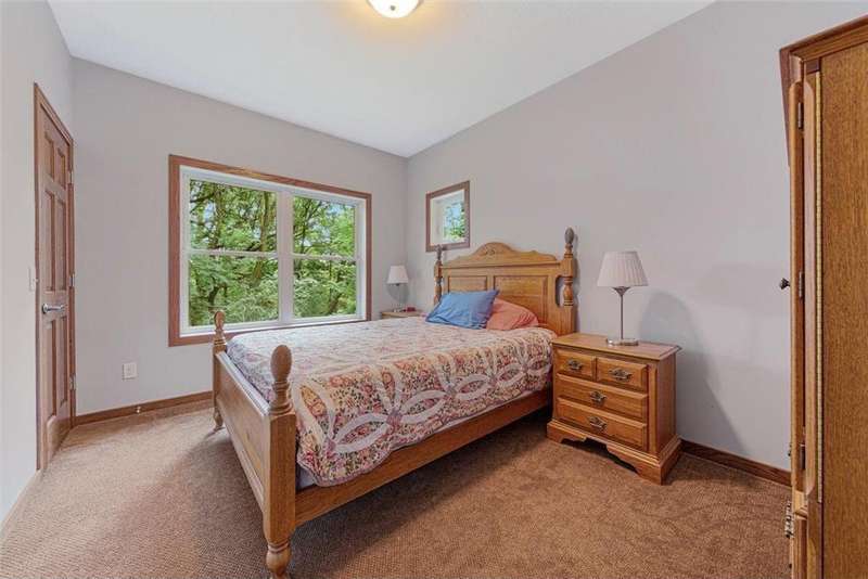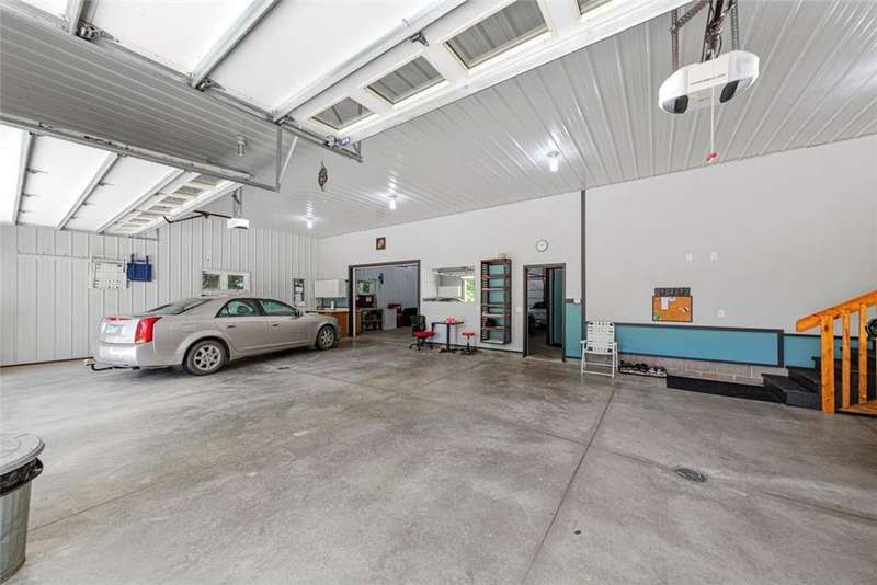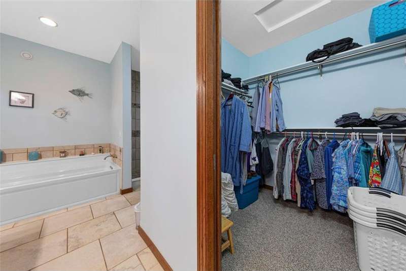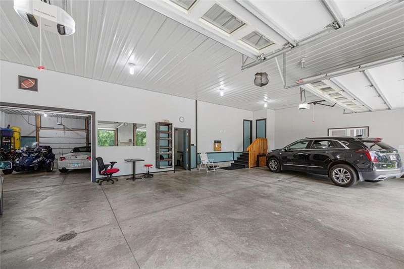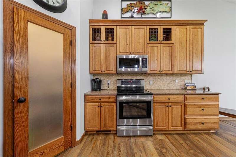 Exceptional In-Town Retreat on a Wooded Acre Lot! Tucked away on a beautifully wooded lot just over an acre—this stunning 4-bedroom plus office, 4-bath home offers the perfect balance of privacy, space, and convenience. Step into the heart of the home: a chef-inspired kitchen with a generous center island, perfect for gatherings, and a striking stone fireplace that warms the open, inviting living area. The main-floor primary suite is a true retreat, featuring a spa-like bath with dual vanities, a whirlpool tub, and a separate shower. Main-floor laundry adds ease to everyday living, while the finished lower level delivers even more: 2 zone in-floor heat, a second laundry area, a spacious family room, a stubbed-in wet bar, and direct walk-out access to the garage. For car enthusiasts or hobbyists, the attached 8+ car garage is a dream—offering over 2,400 sq ft of heated space, in-floor heat, a floor drain, ample storage, and four overhead doors. Thoughtfully designed and meticulously maintained, this rare in-town property has it all—privacy, functionality, and incredible space both inside and out.